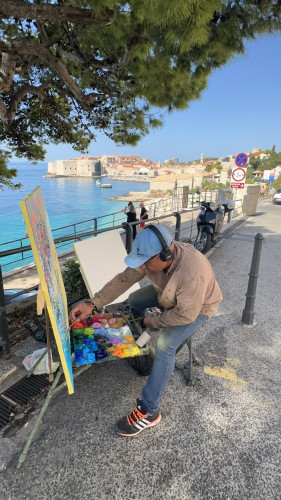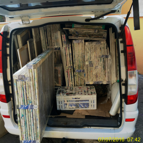 After completing a four-month plein air residency in Antibes, France, loading the painting into the car