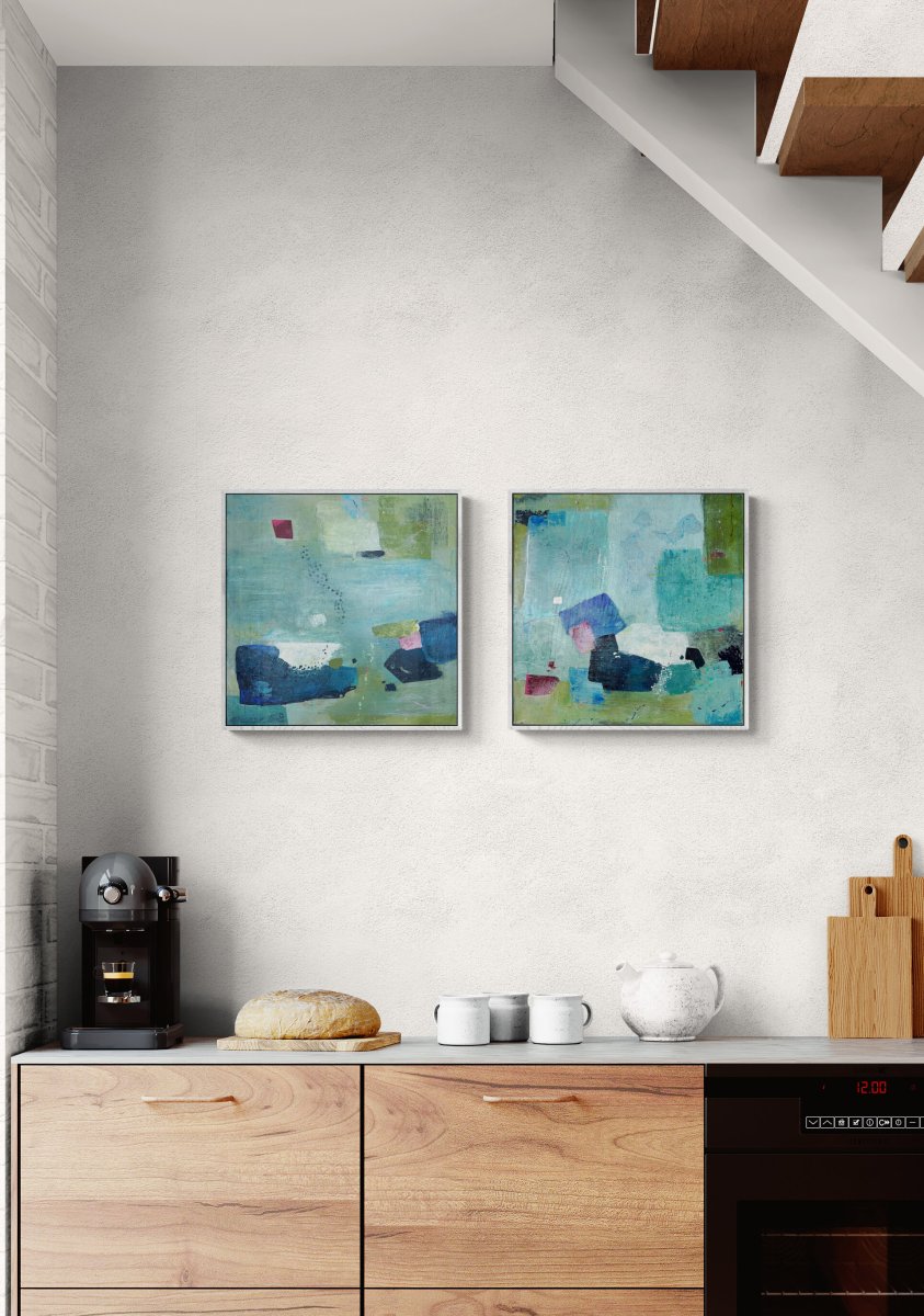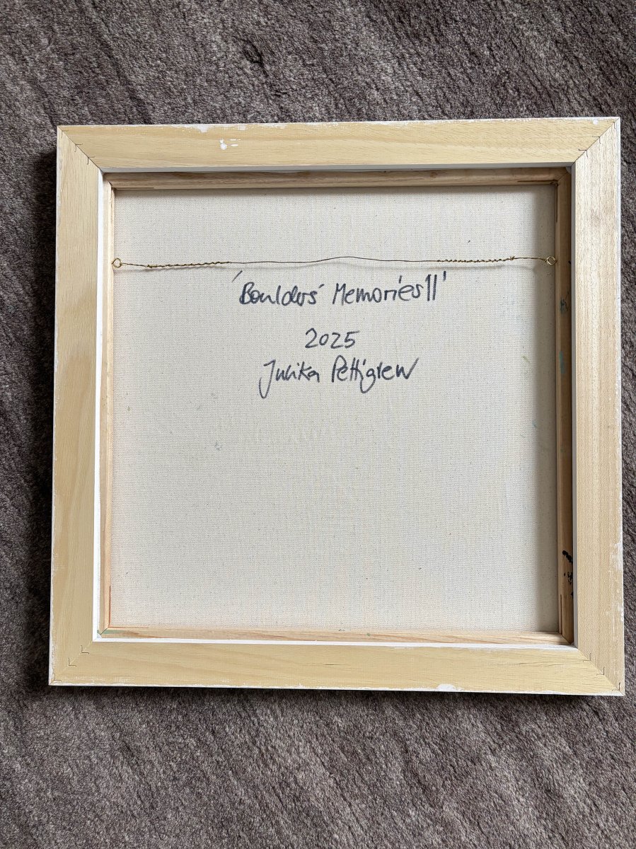 Original abstract painting inspired by Boulders Beach in South Africa, featuring dynamically composed shapes and a vibrant, yet harmonious colour scheme. The Boulders' Memories add refined sense of natural texture and depth, enhancing your space with elegant artistic expression.