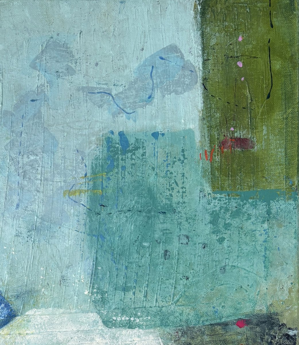 A playful dance of vibrant planes of Cerulean and cobalt blues, pistachio and mint greens. Accents of orange bring this abstract landscape composition to life. This is for you if you would like to add a burst of energy to your space.