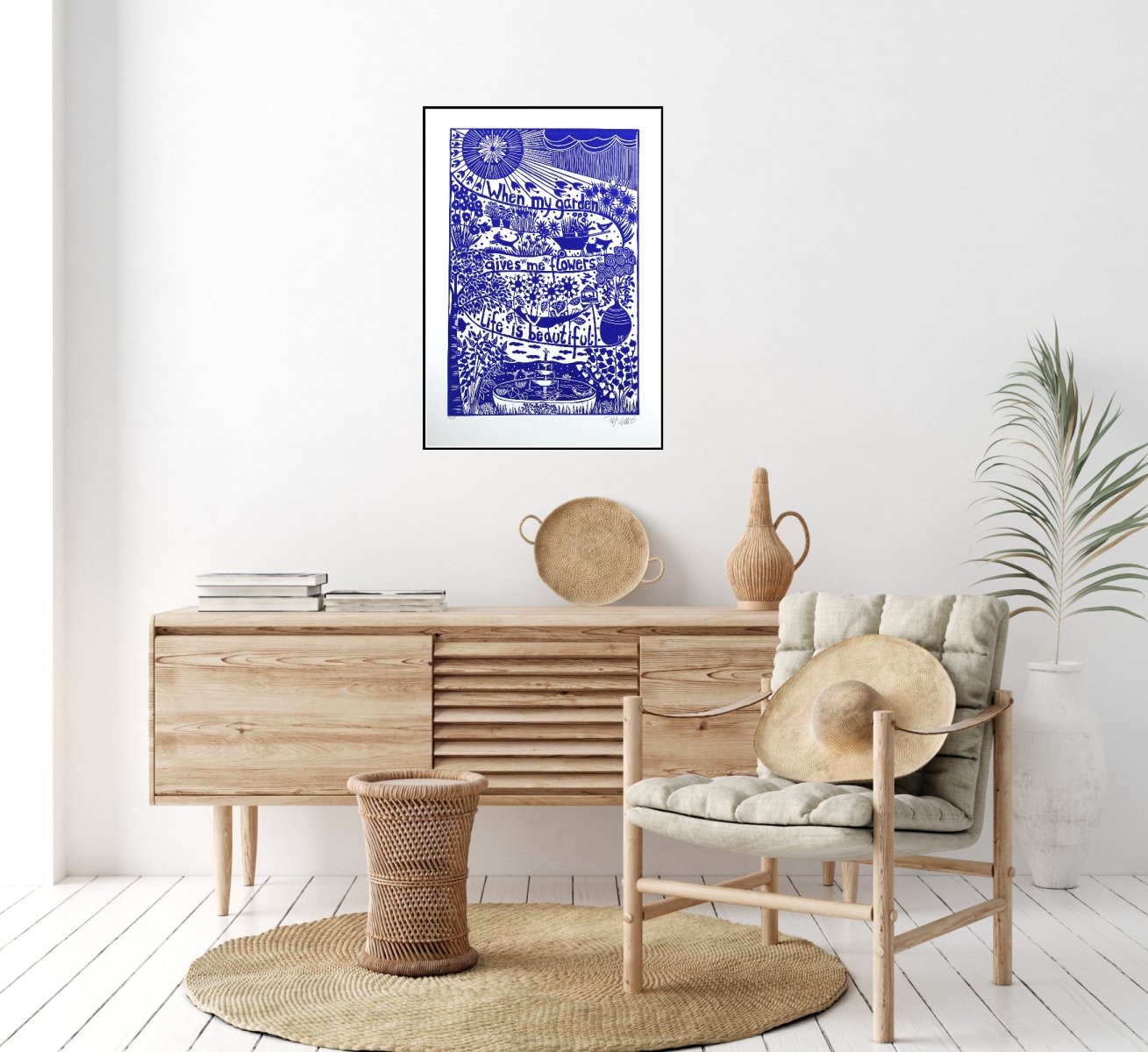 Linocuts are wonderful graphic pieces of printmaking, that can make for a real focal point in your room, you are so welcome to ask me about framing advice etc. The home interior photos might not be entirely to scale.