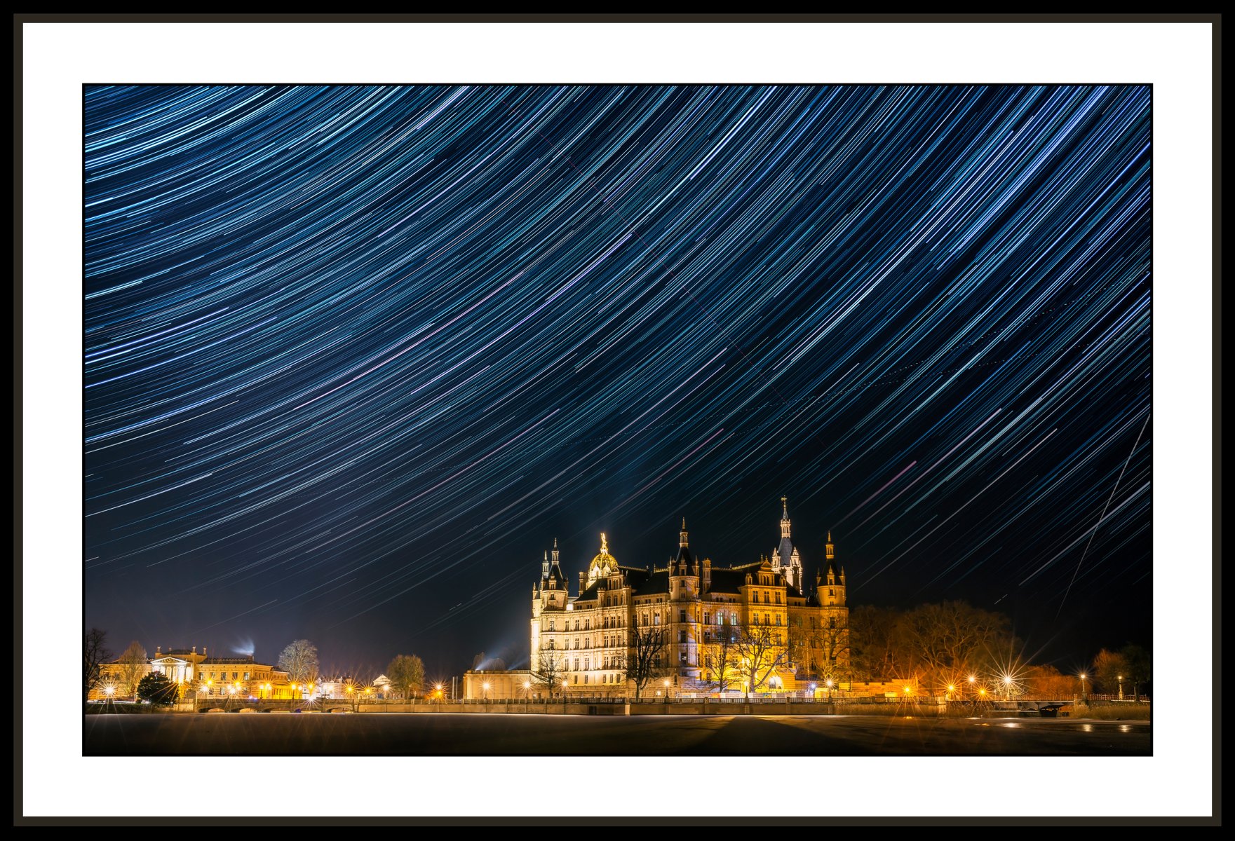 Star trails above Schwerin Castle #3729