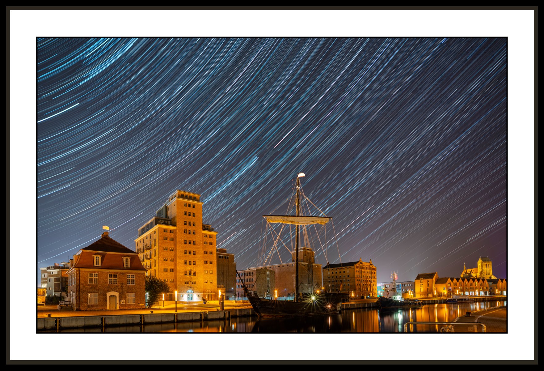 Star trails over the old port of Wismar #9395