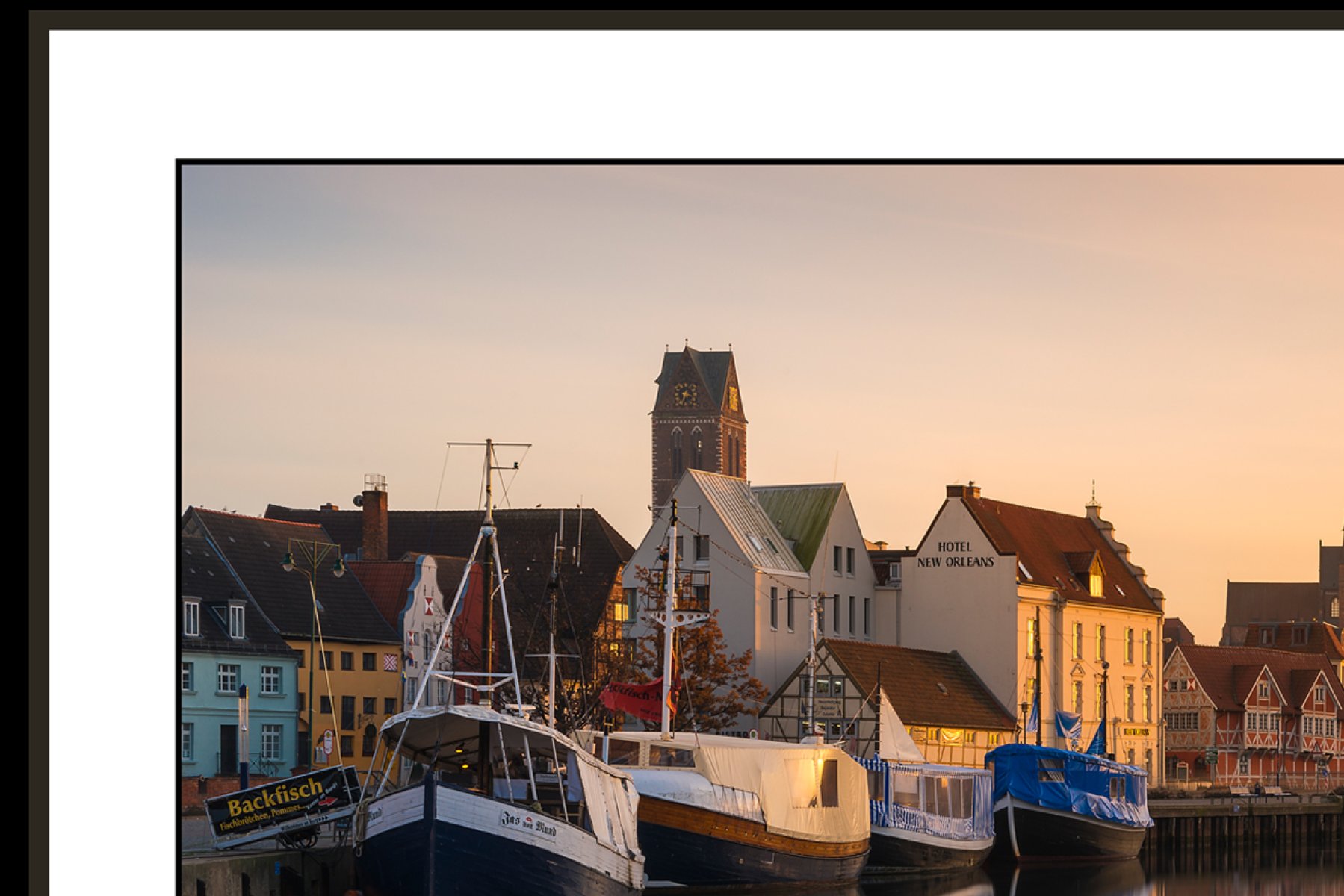 Photo printed directly onto 3mm matte acrylic glass and mounted on 2mm aluminum composite panel. Mounted in a black shadow gap frame (3.5cm high, 1cm wide) with an 8mm shadow gap.
