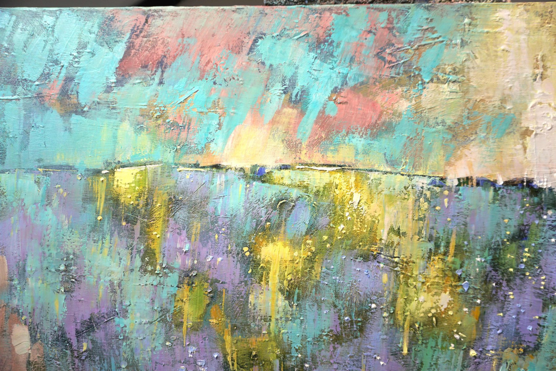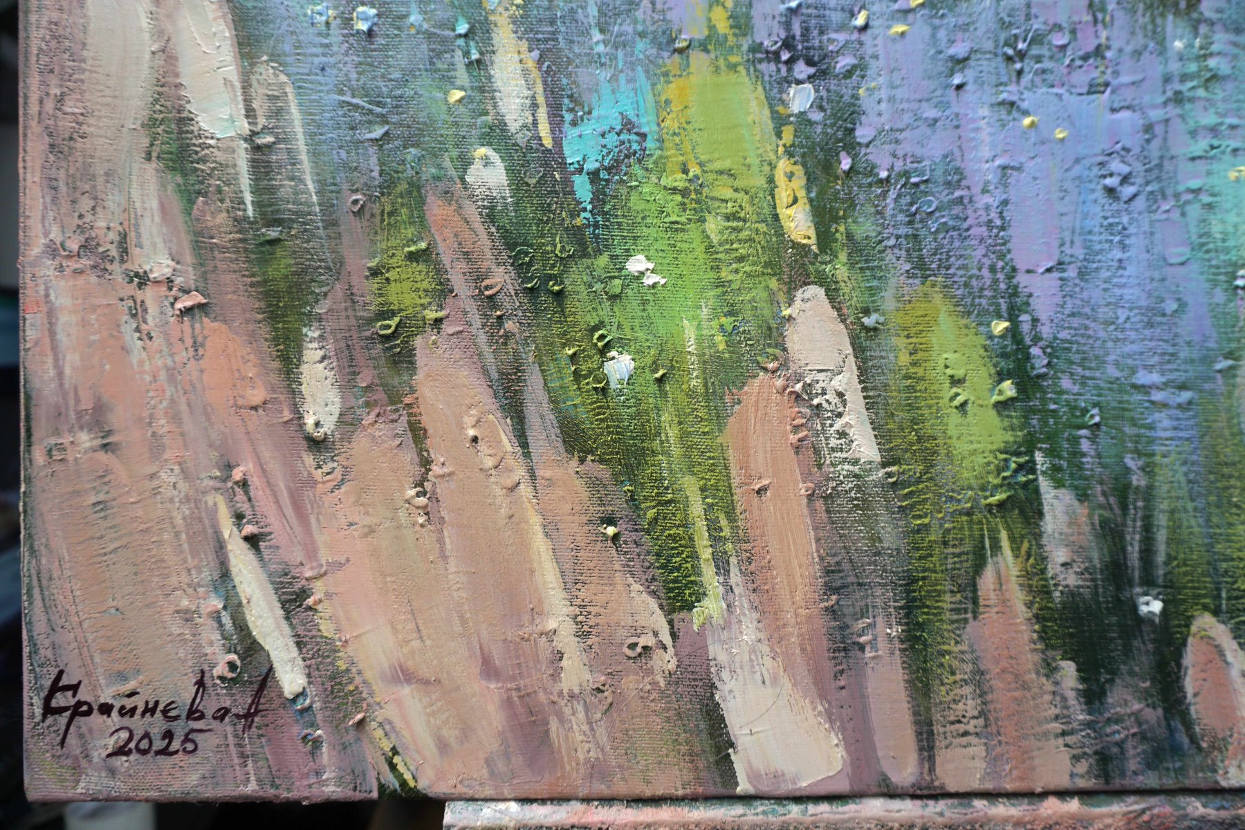 In this piece, I poured my emotions into each textured stroke, blending expressionism, impressionism, and realism. The vibrant purples and golds ripple like fragrant waves, evoking a serene yet passionate energy. I wanted to capture a moment where nature’s softness meets the unpredictable flow of feeling, inviting warmth and inspiration into any space. This painting breathes calm vitality and a gentle, uplifting spirit. Painting from the series: Honey from minefields, landscapes of Ukraine.