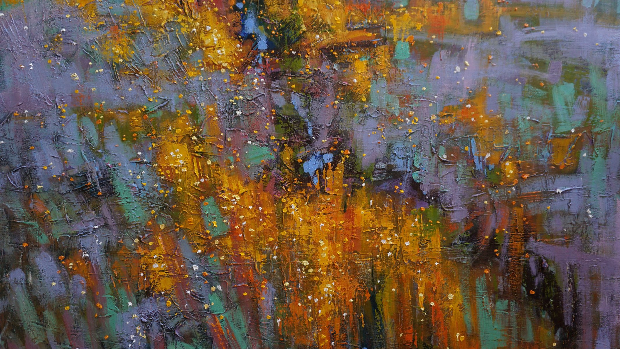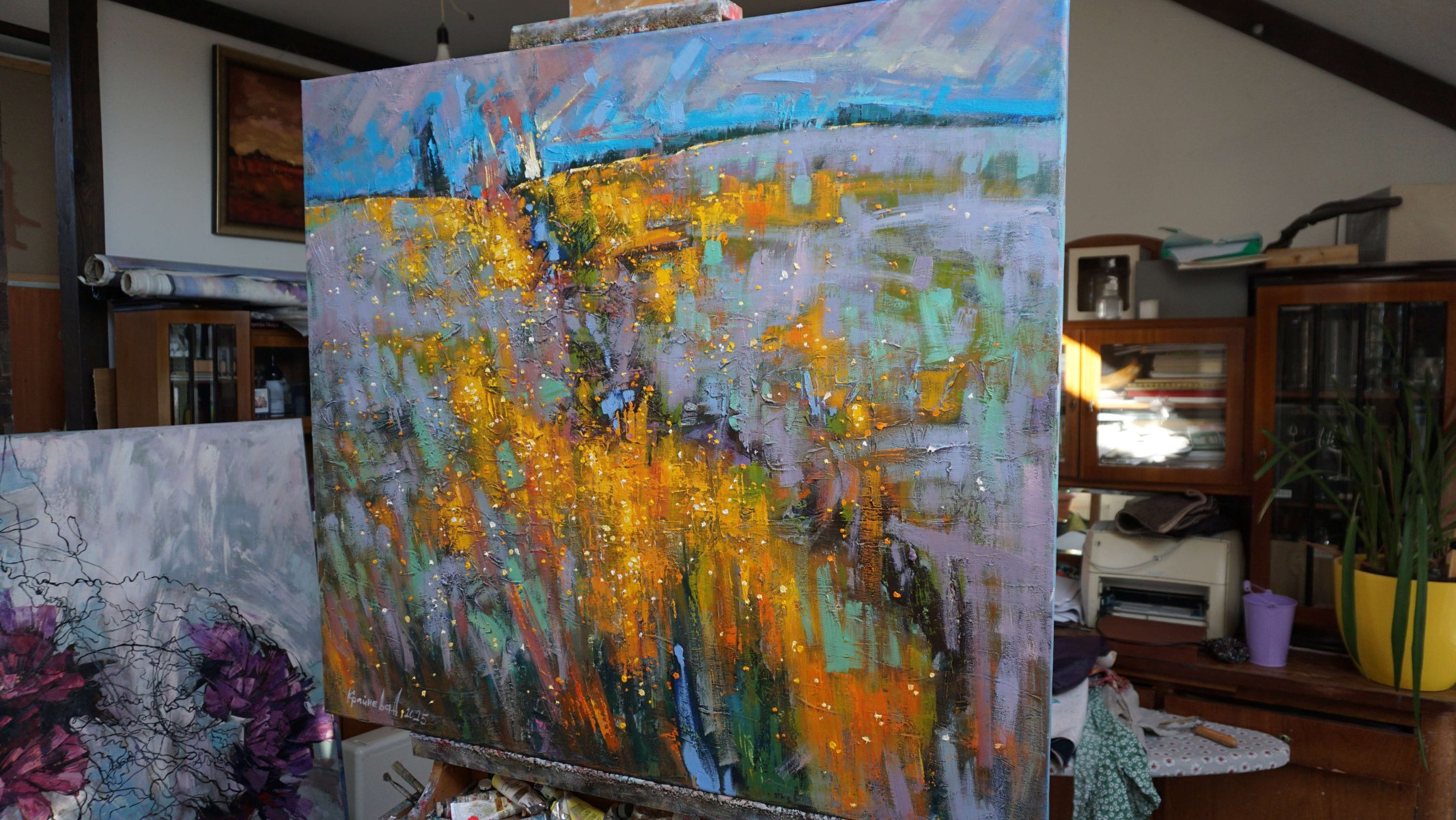 In this canvas, I weaved the fiery vitality of wildflowers through the harmony of expressionism and impressionism. As an artist, I aimed to capture the ephemeral yet intense burst of life that flowers represent, set against a backdrop that suggests both serenity and profound depth. This artwork celebrates nature’s resilience and beauty; it’s designed to invoke feelings of awe and the warmth of a sunlit meadow in your own space. The Earth Smiles with Flowers. Series "Honey from Minefields"