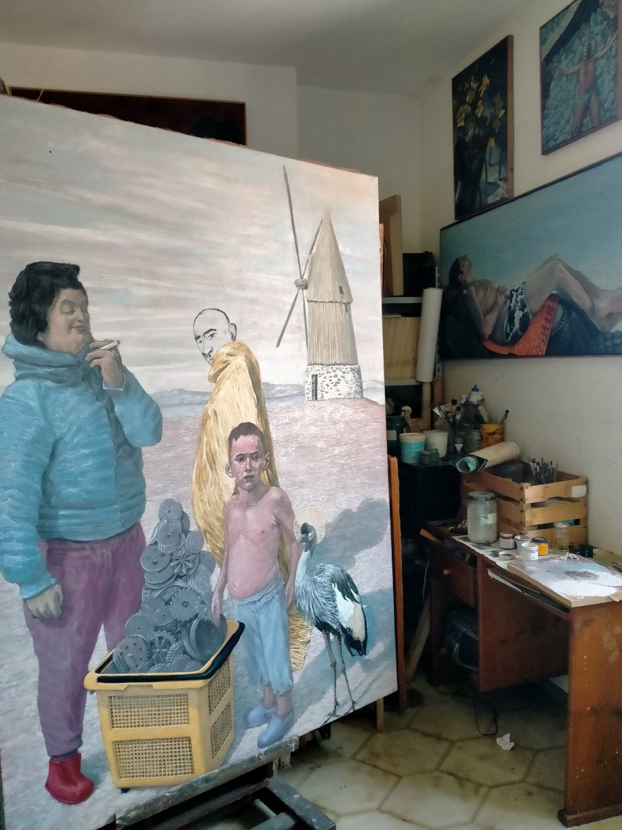 In una terra desolata vicino al mare, un bambino si è fermato a osservare la strada che ha percorso con il suo carretto, prima di arrivare al vecchio mulino rotto per ripararlo. Porta con sé pezzi di ricambio ed è accompagnato dalle sue guide spirituali. Il suo capo lo attende pazientemente fumando una sigaretta e accanto a lui si è fermata una gru coronata.