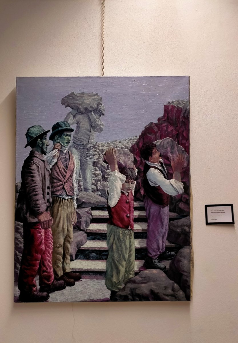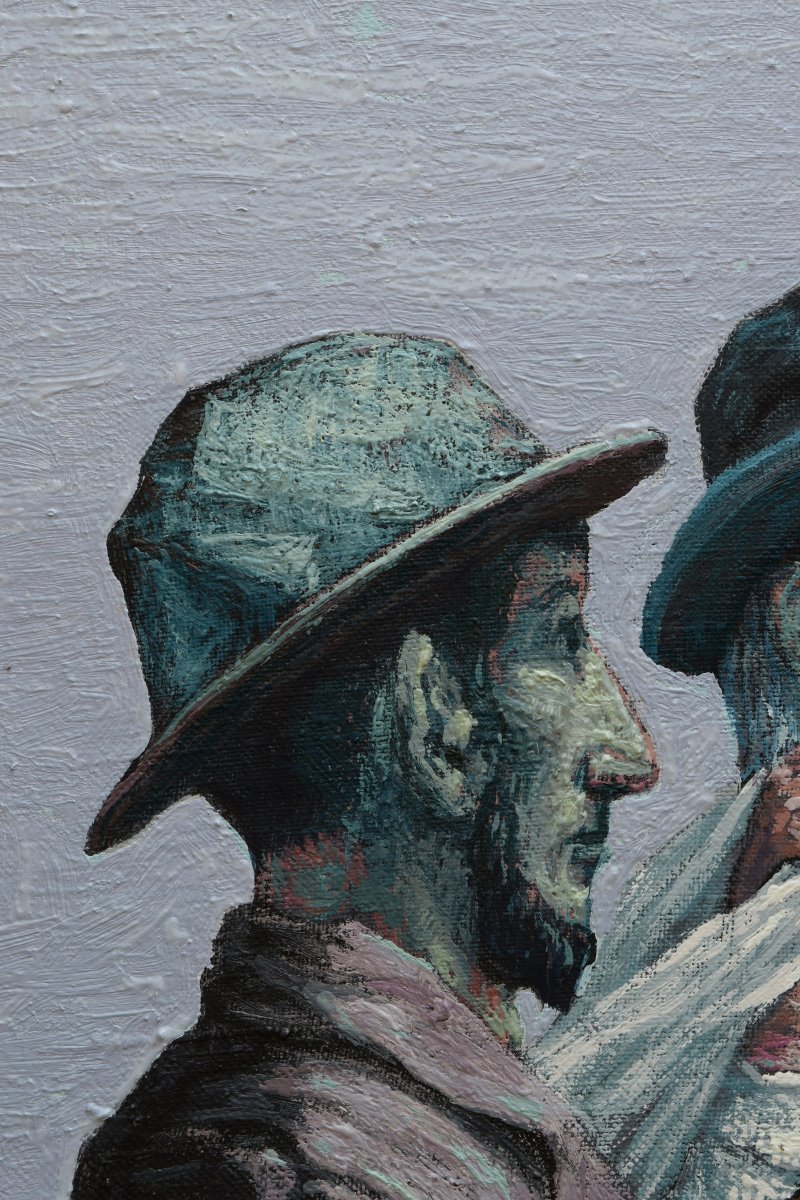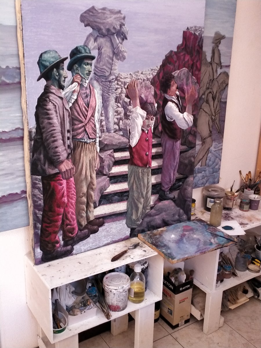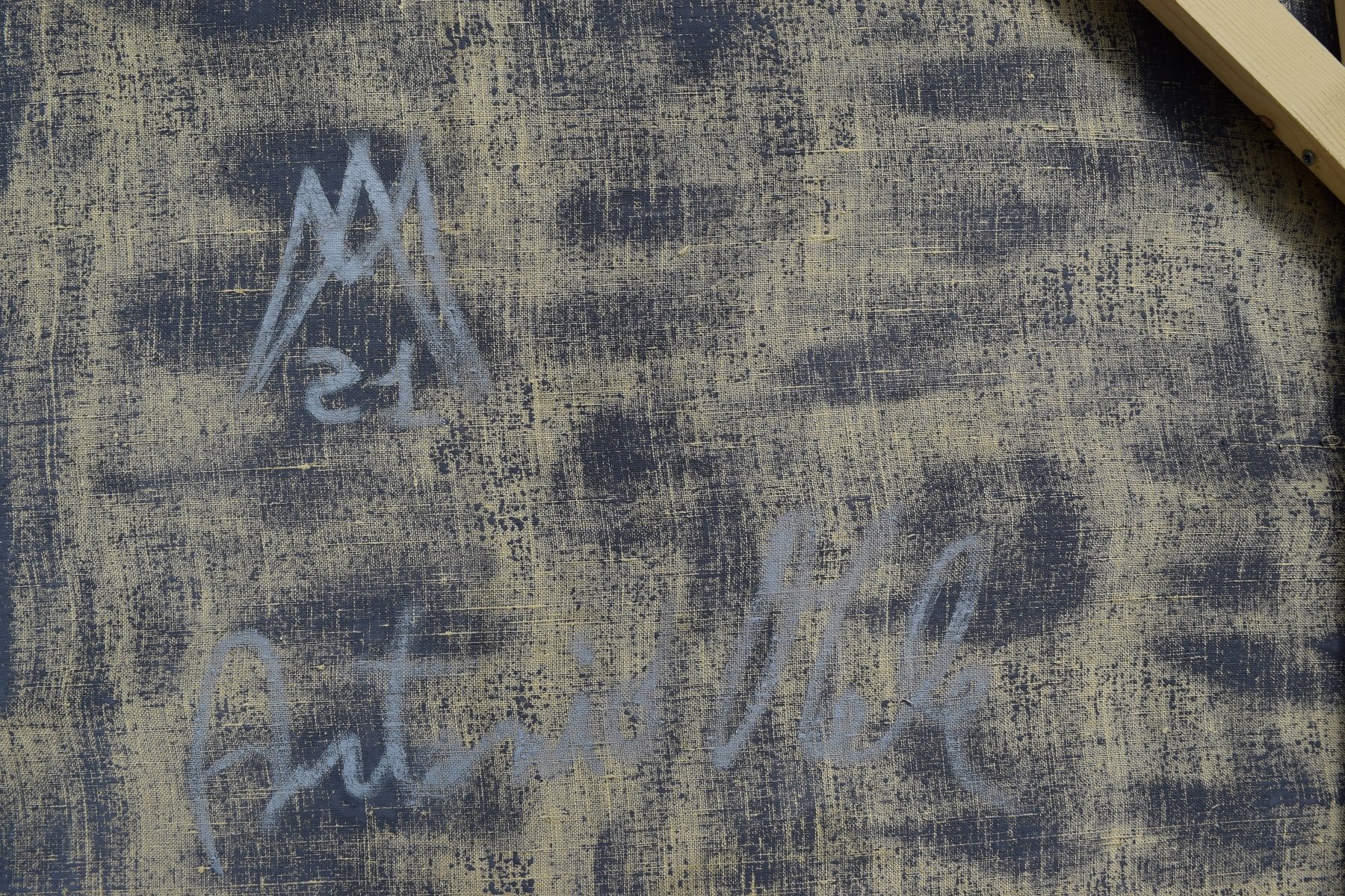 The work is made with raw pigments mixed with linseed oil on linen canvas.