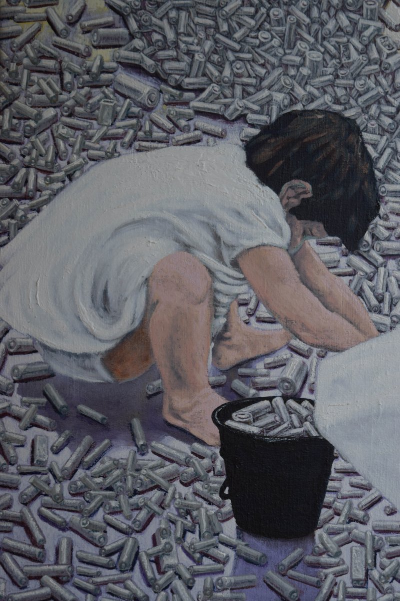 Harvesting the batteries, oil on canvas. cm. 160 x 114. 2015.