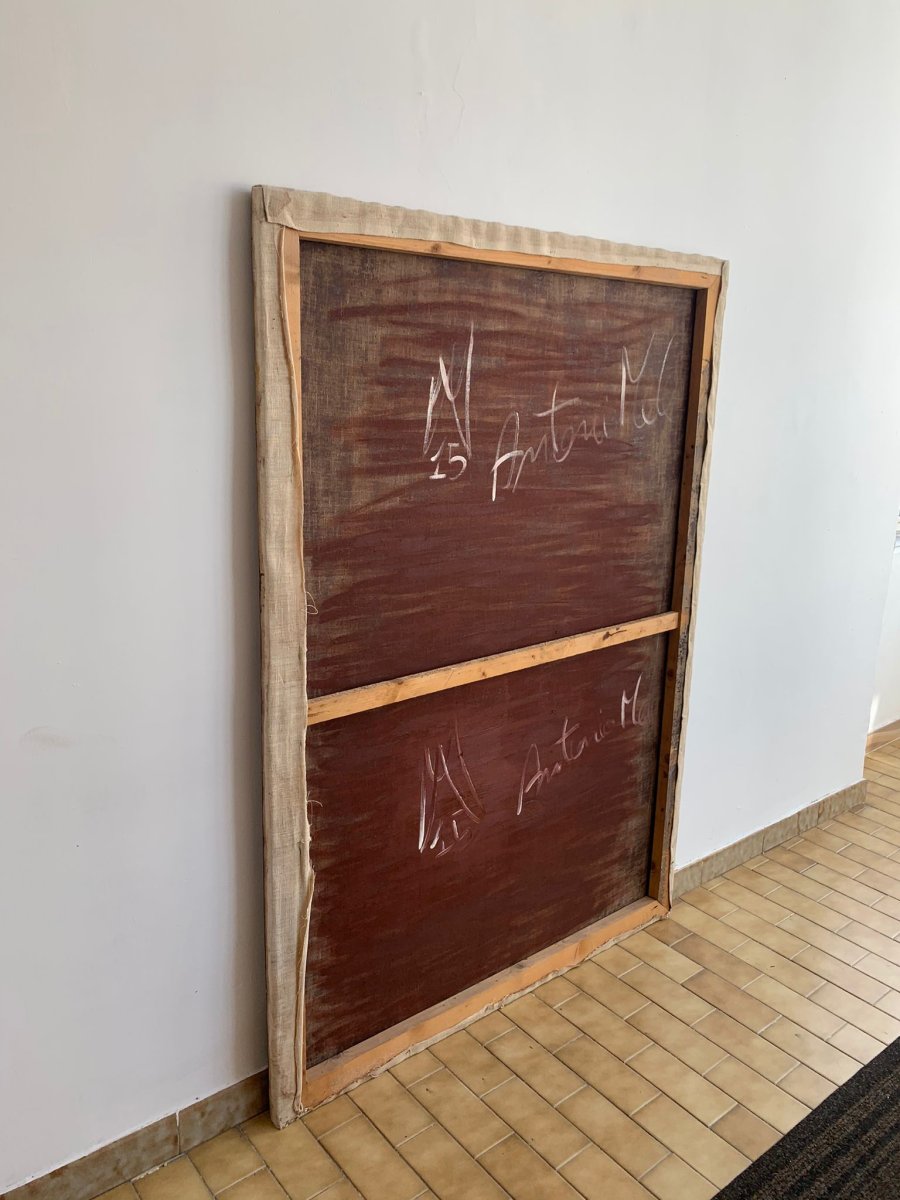 The painting is mounted on a professional wooden chassis, ready to be hung on the wall.