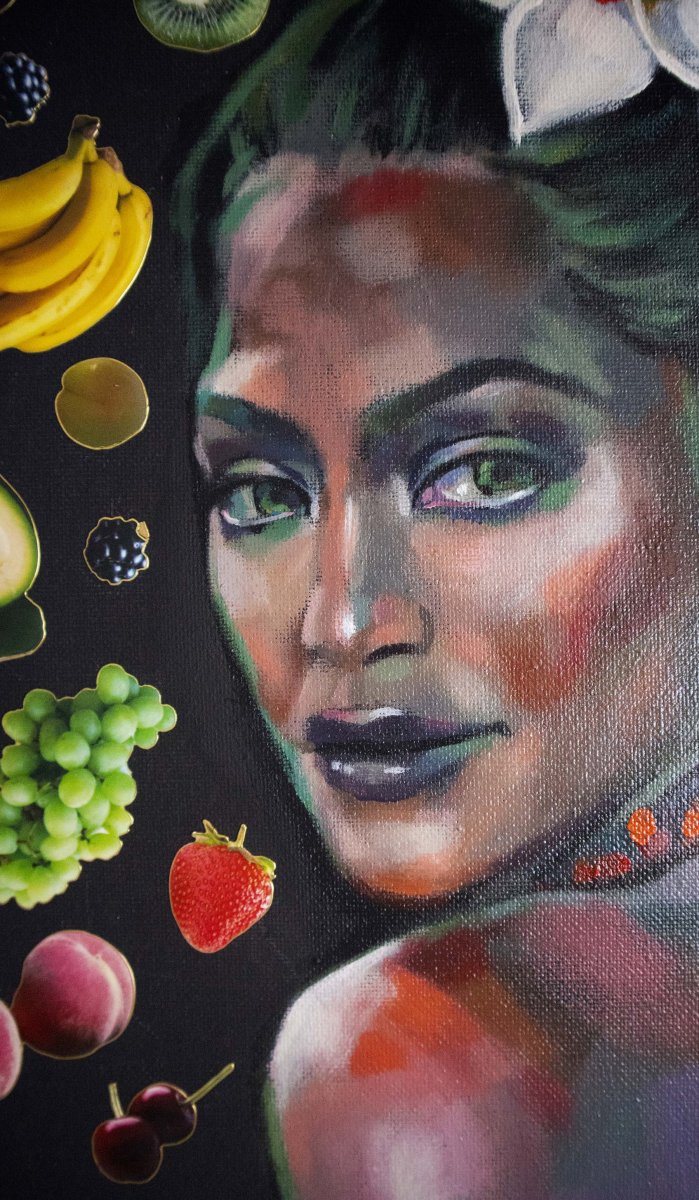 original acrylic painting on canvas with collagen elements