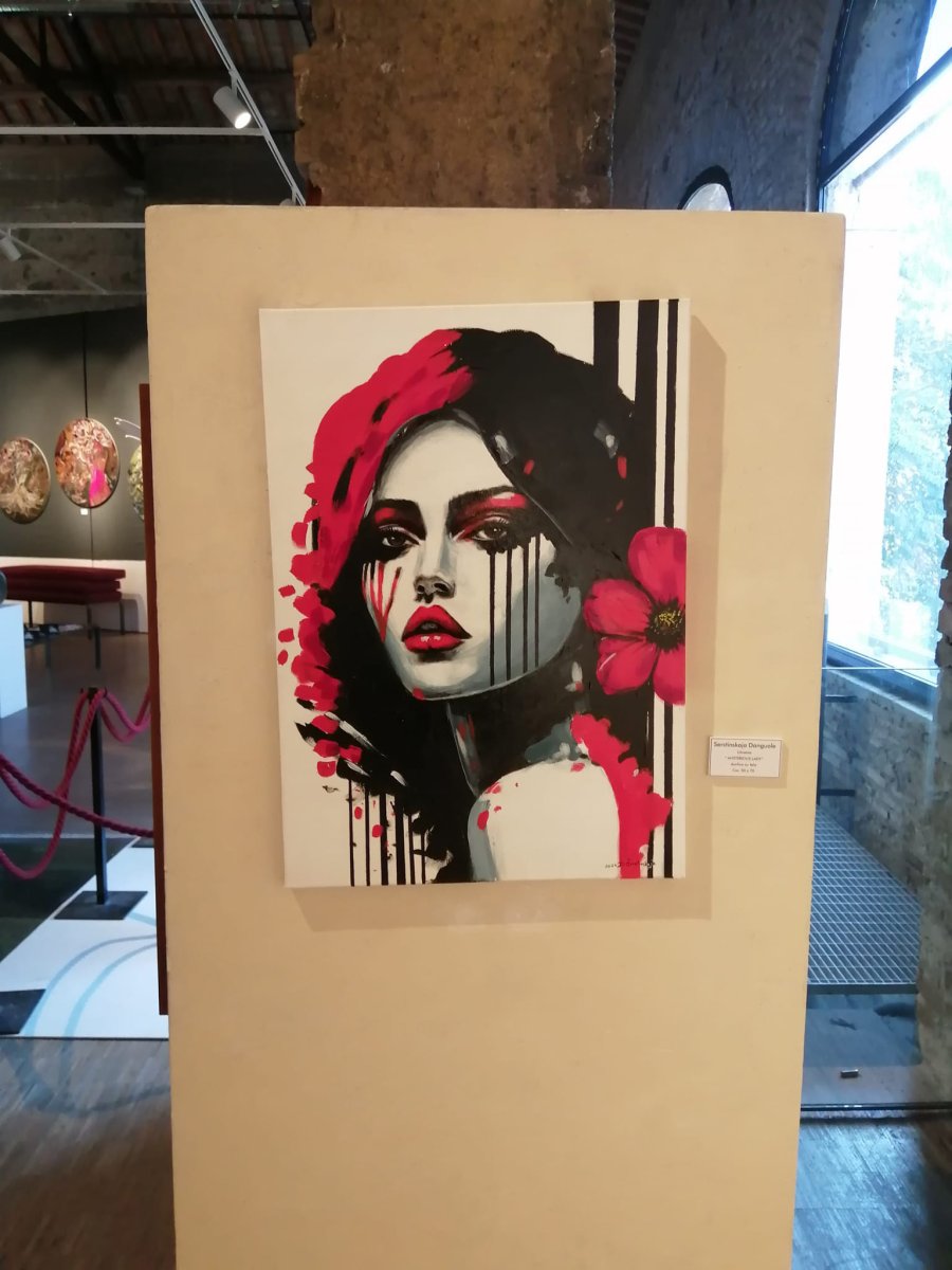 This original acrylic painting by Danguole Serstinskaja was exhibited in July 2024 at the prestigious National Scuderie Aldobrandini Museum in Rome, Italy.