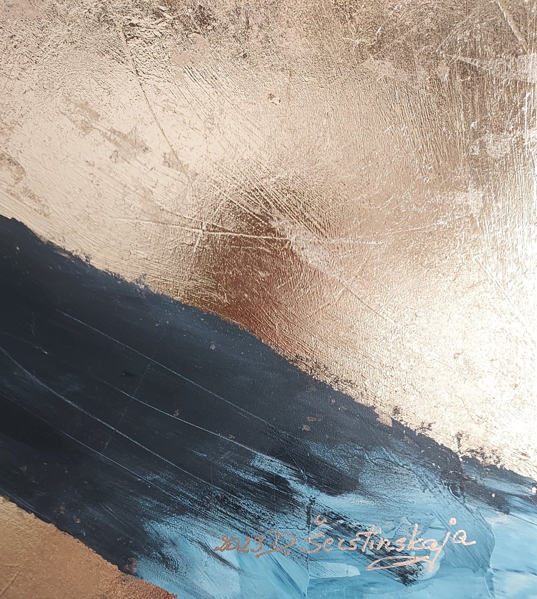 The graceful movement of the bird’s wings contrasts with the radiant gold. The artwork suggests themes of freedom and intuition.