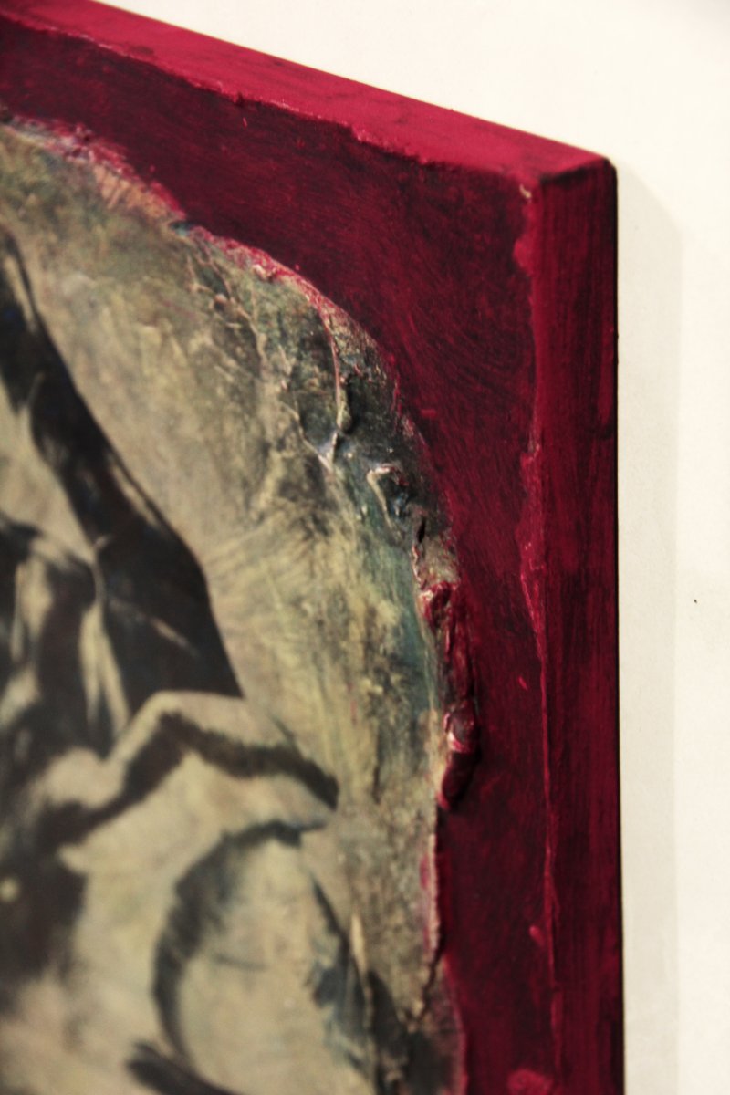 Using egg white as a natural binder—following ancient artistic traditions—and fixed by the power of direct sunlight, the process creates a living surface. The resulting organic cracks and textures seem to have been shaped by millennia.