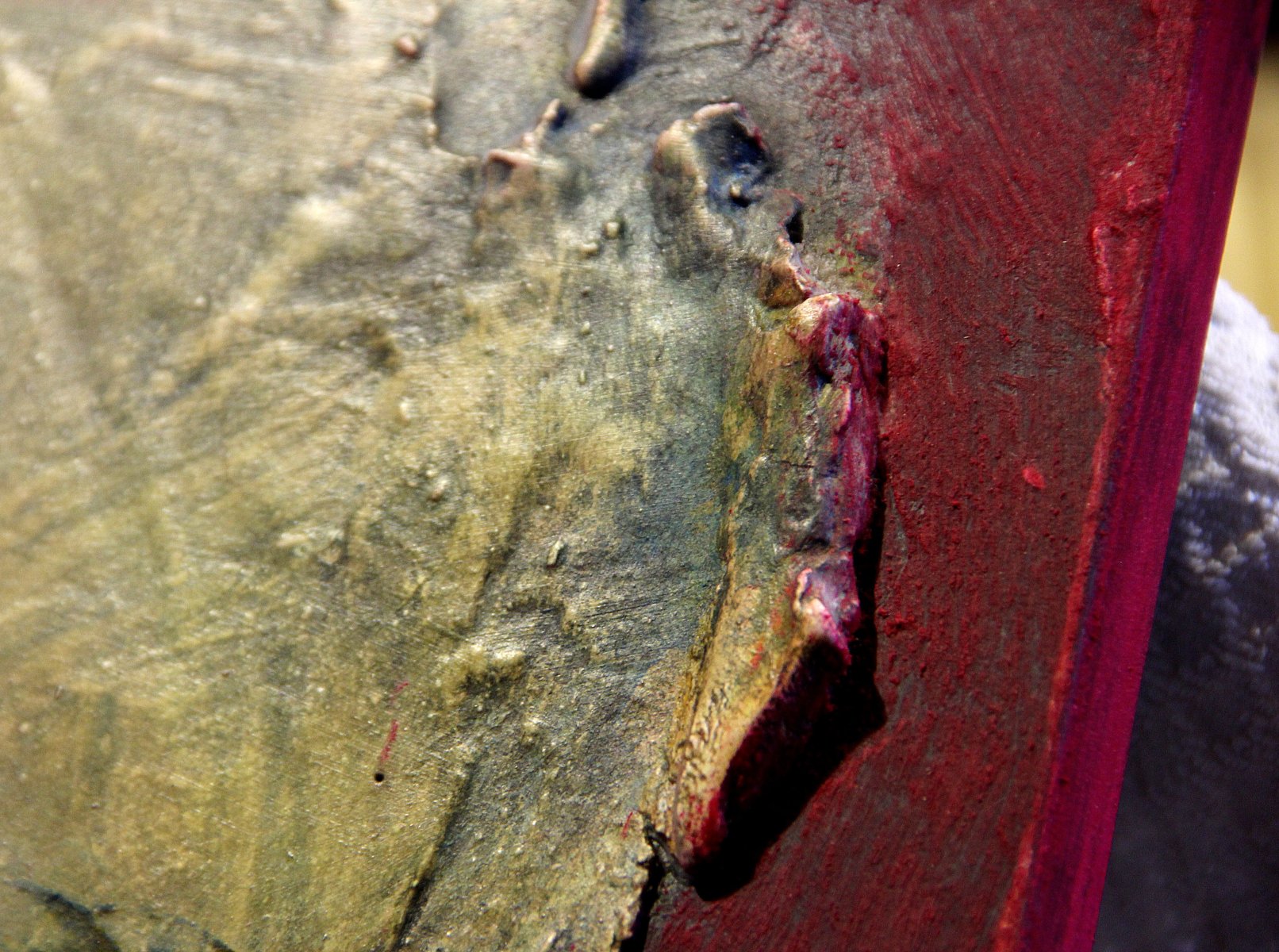 Medium: Mixed Media (Metallic oxides, egg albumin, pure pigments on wood/ceramic).