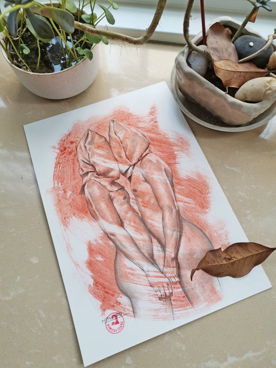 This original drawing has been lightly sprayed with fixative. If stored correctly or framed, this drawing will last for generations.