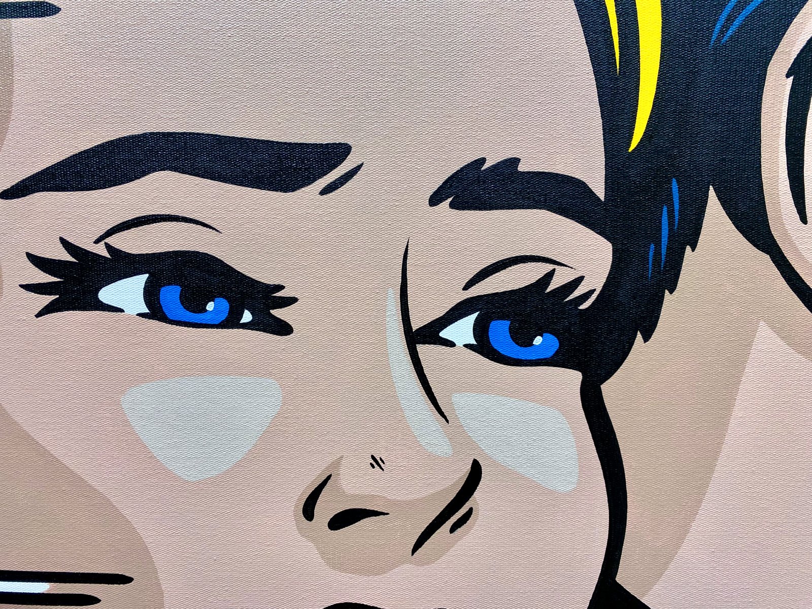 In this vibrant piece we see the spirit of adventure and the pulse of romance, capturing a moment of defiant love as two souls embark on the journey of life together. An imagining the next scene after Lichtenstein's 'In The Car' painting. The bold lines and striking colors of comics and pop art pulse with life, encapsulating a narrative of fearless affection and shared destiny. A story of unity and excitement meant to ignite a spark of passion and wanderlust in your living space.