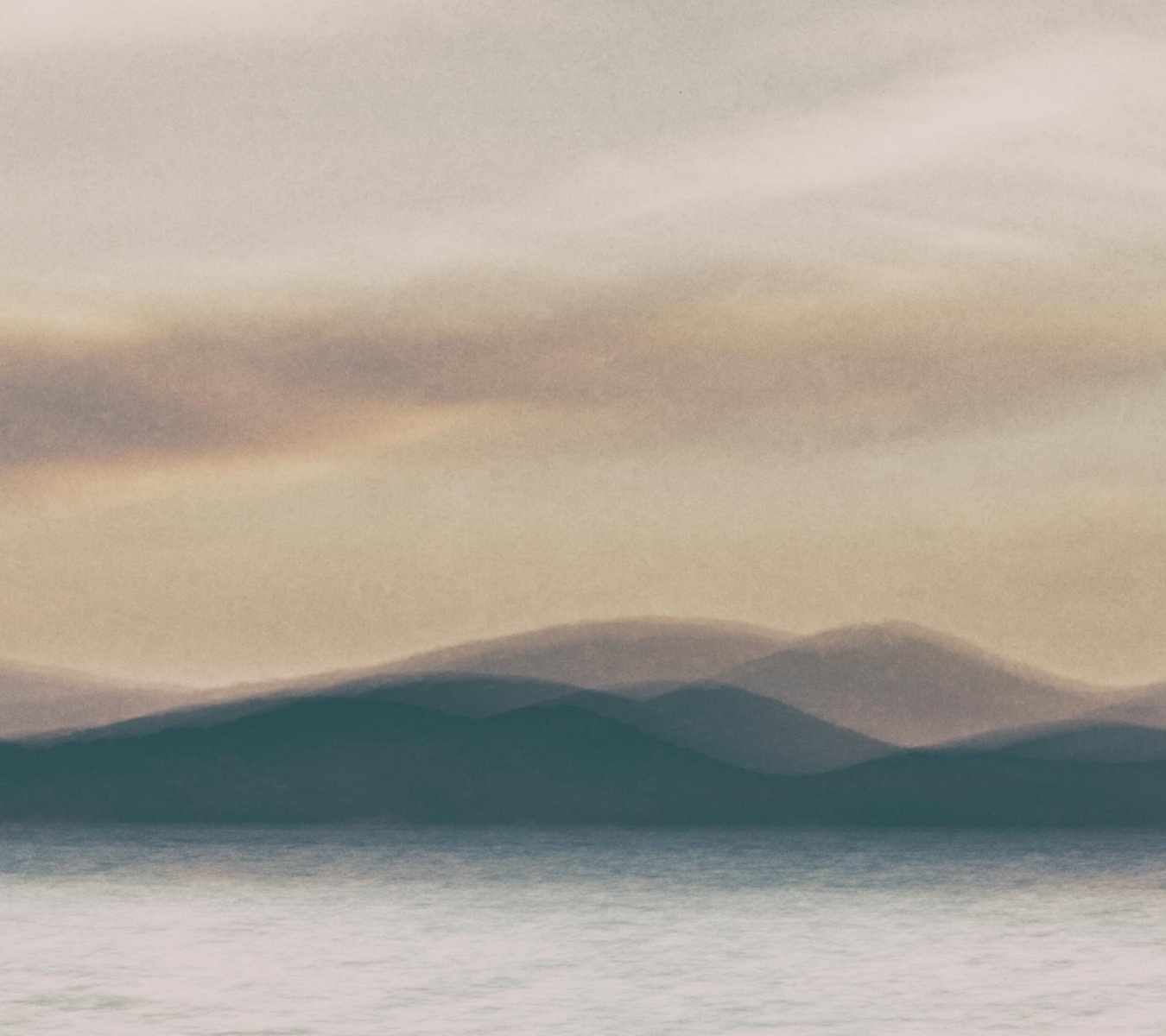 They are a study in serenity, fading into an eternal horizon through exquisite aerial perspective. Each ridge is brushed with its own unique layer of shadow, transitioning from smoky grey-blue to a delicate teal. This gradient of color gives the piece its name—the sublime gulf between shades.