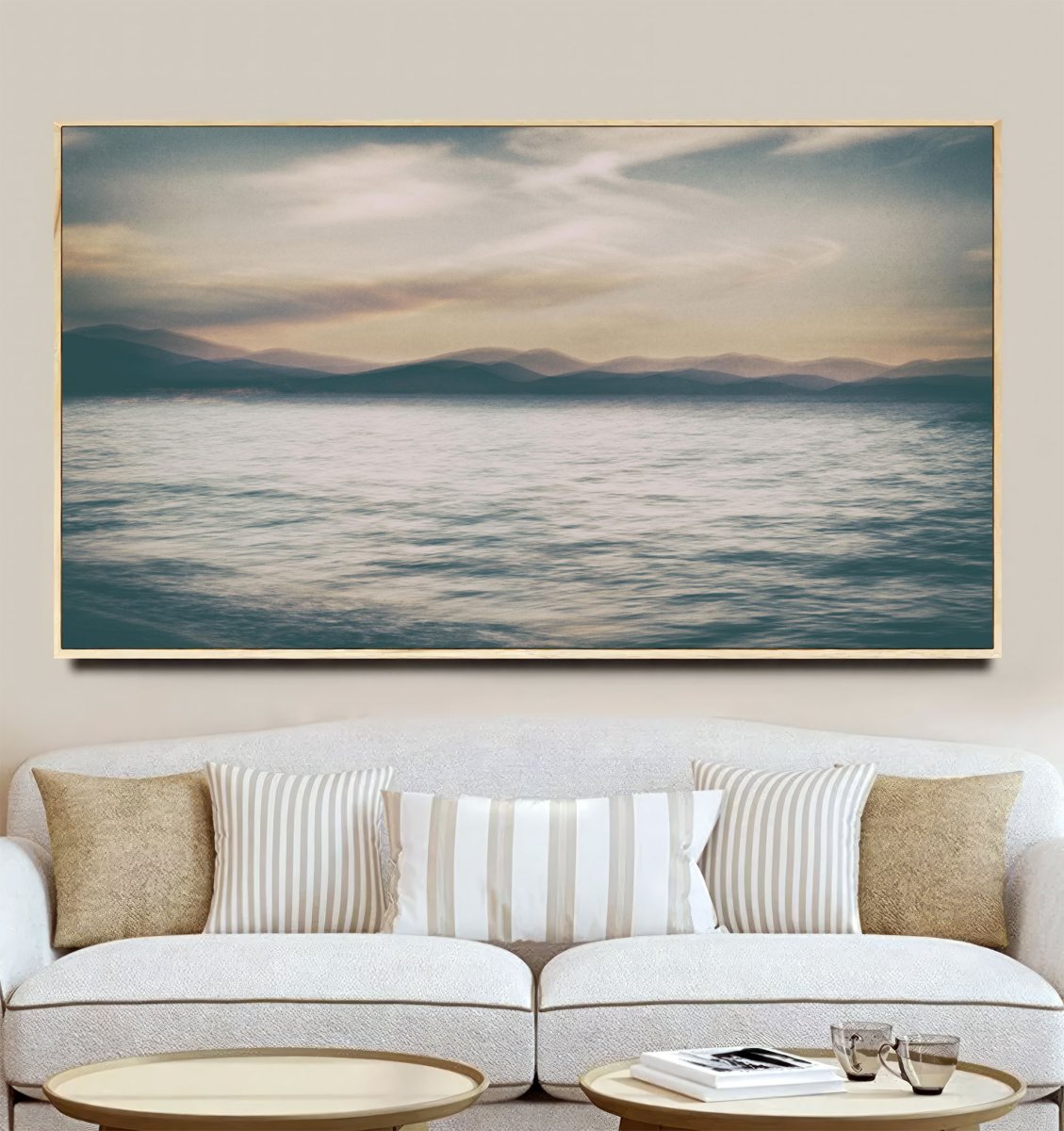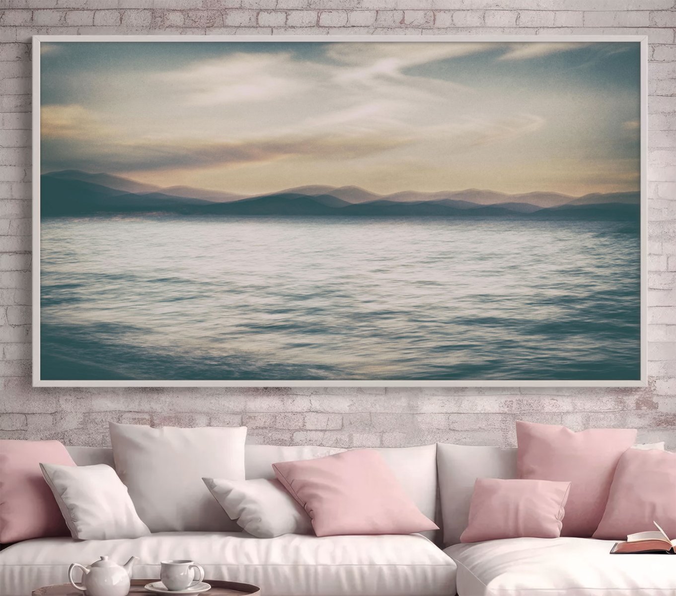 My aim with the composition was perfect horizontal balance. Three distinct layers—sea, shadow, and sky—anchor this image, designed to bring immediate peace and tranquility to any space.