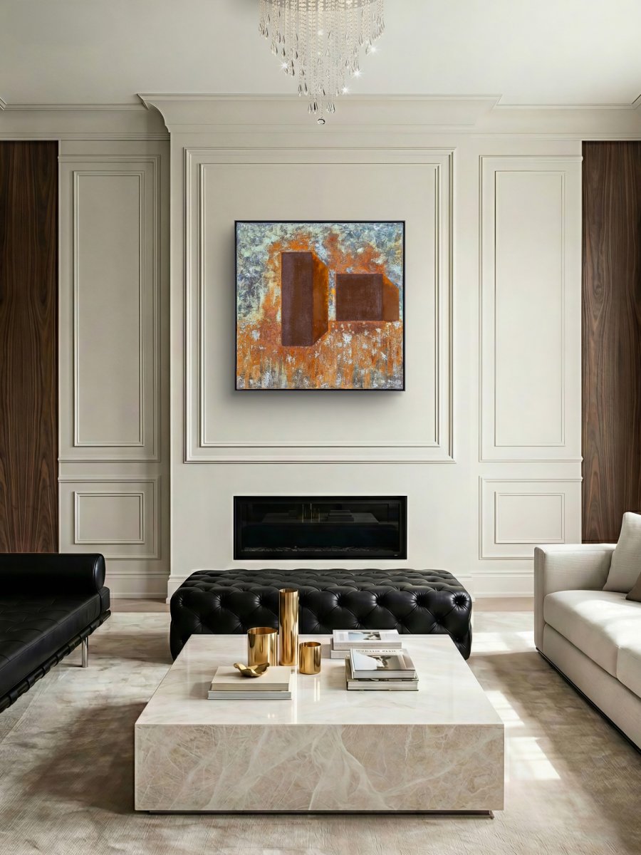 In my series of works “Oxidation”, I utilize the naturally occurring decomposition and aging of iron/steel and copper.