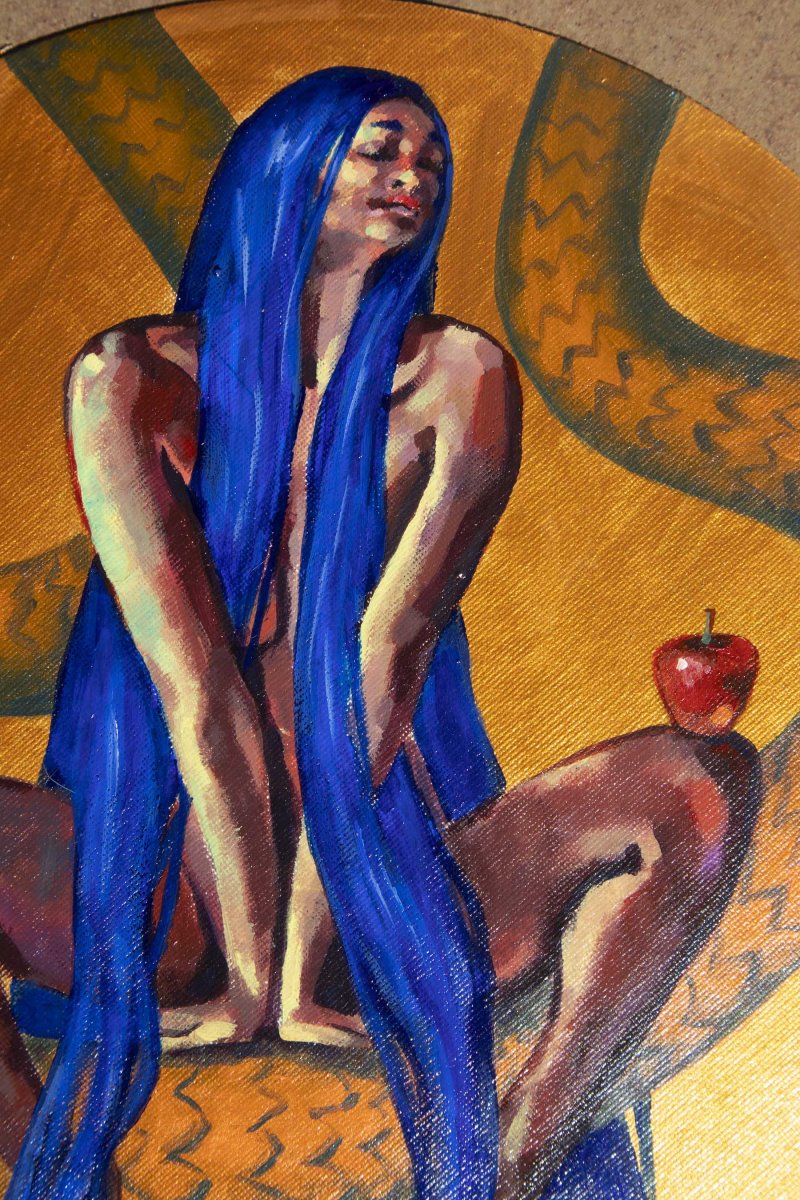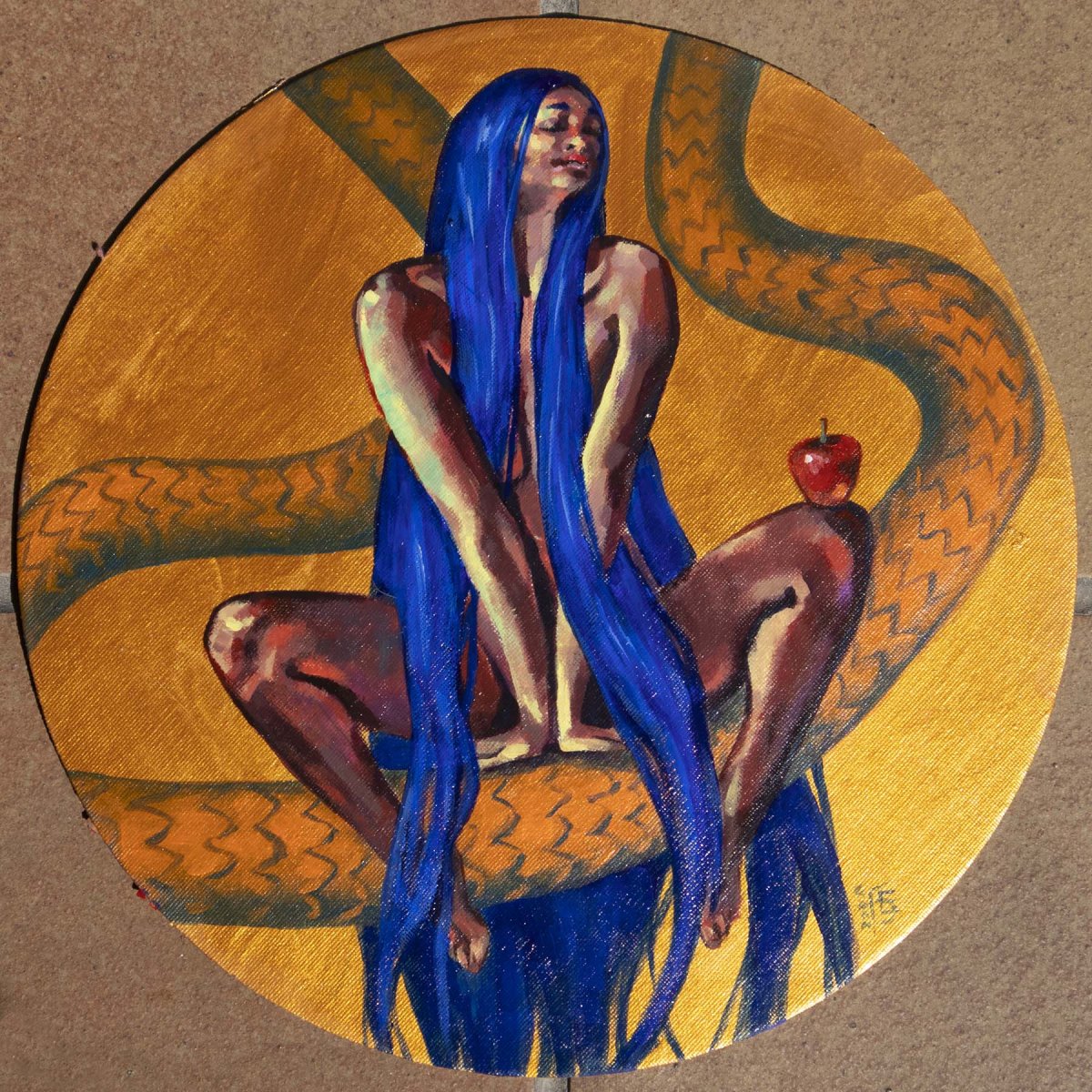 original acrylic painting on cardboard with circle form