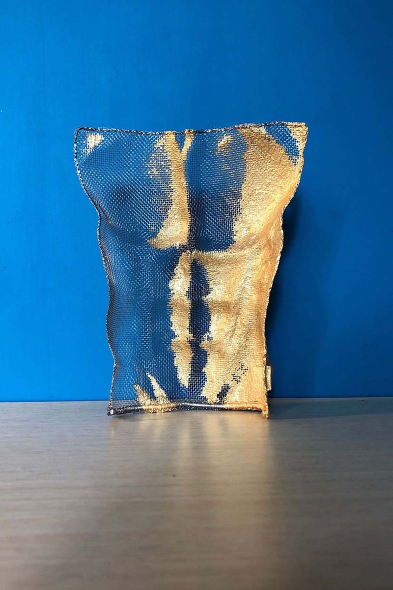 The sculpture depict the balance, symmetry and proportion of a male torso, Like most things in life, the sculpted body required discipline and strong will to achieve that result, this sculpture is a celebration of that determination. The gold acrylic paint is used to further enhance the contour of the body.