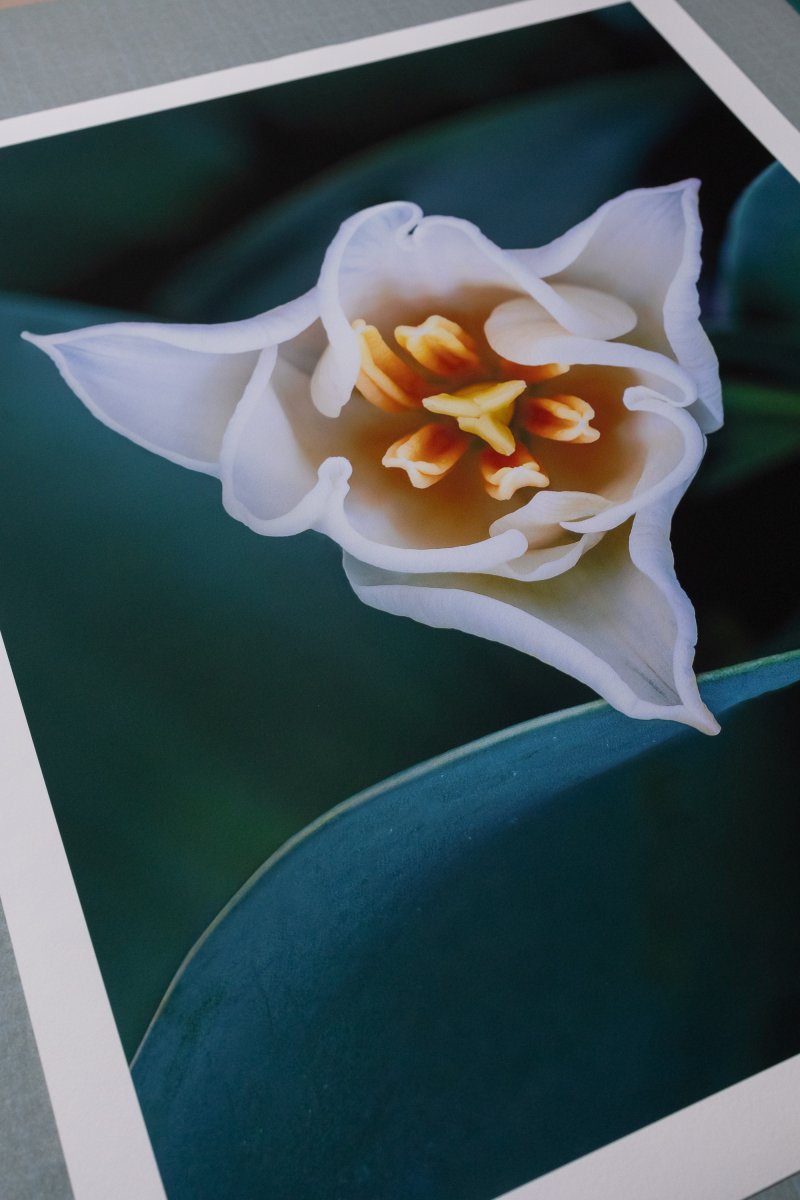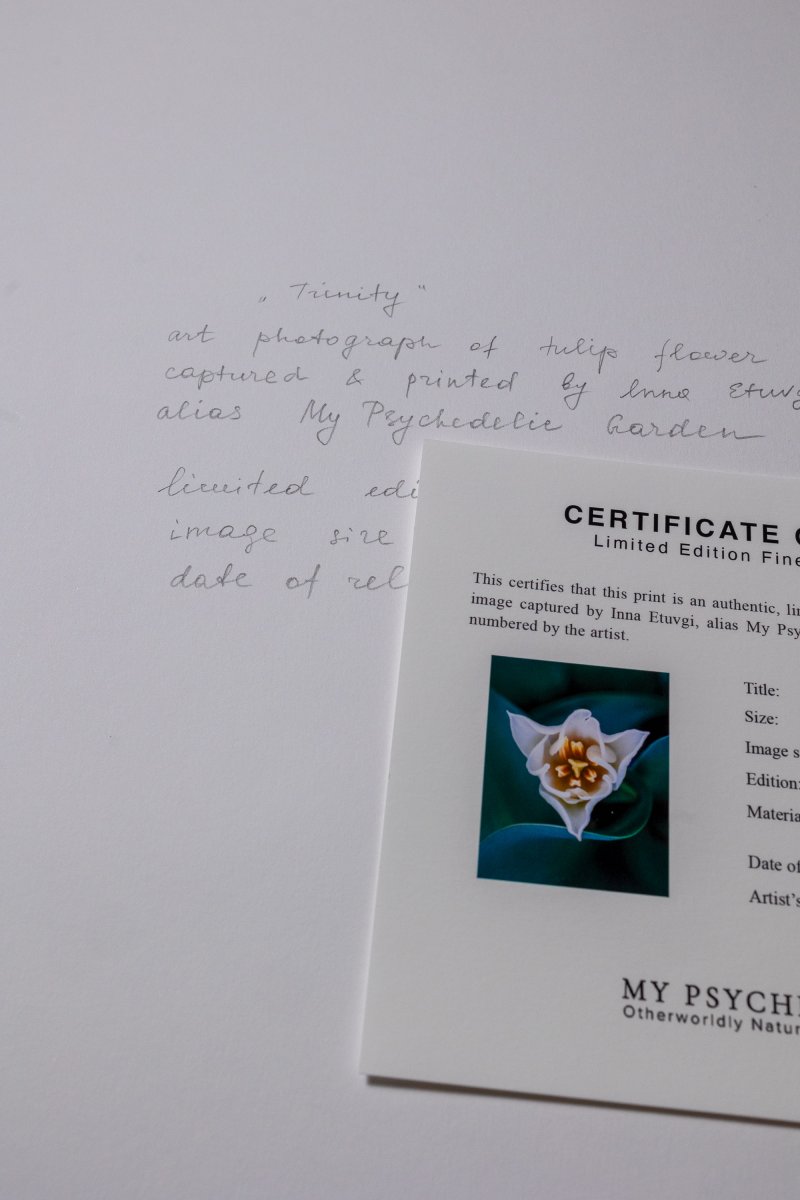 In "Trinity," Inna Etuvgi captures a moment of pure botanical harmony. Against a deep emerald-blue background, the tulip’s petals form a silent, fluid geometry. It is a work of quiet awareness, turning a simple garden flower into a timeless symbol of interconnectedness and grace.