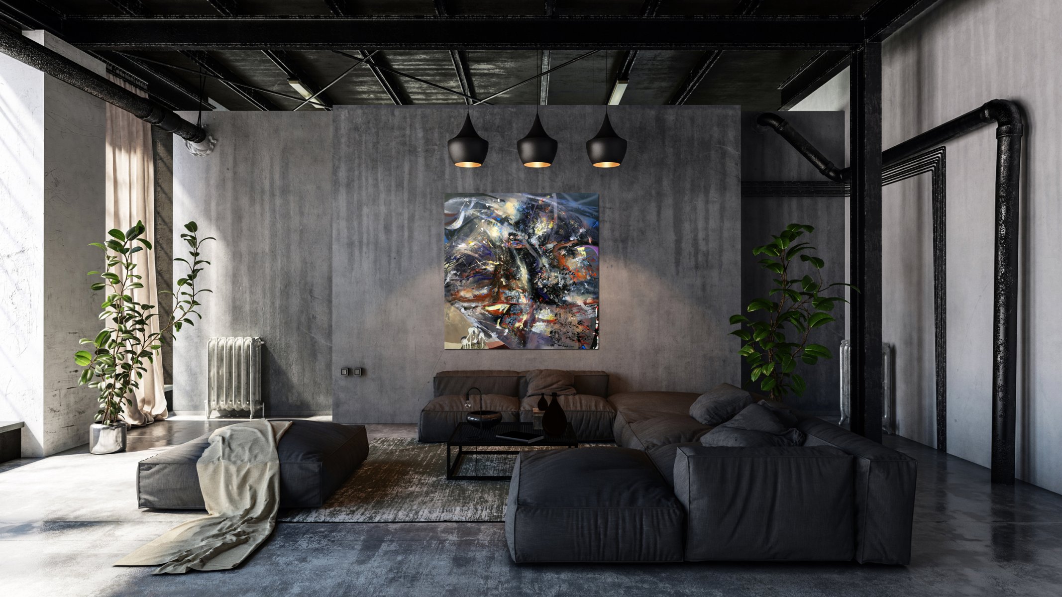 Beyond the Inside / And the Spirit Shall Live On (130 × 130 cm) unfolds as a visceral field where interior states rupture into painterly matter. The composition resists a single point of entry; instead, it draws the viewer into a turbulent convergence of gesture, erosion, and emergence. Layers of pigment collide and dissolve, suggesting both construction and collapse, as if the painting were less an image than a site of lived experience continuously rewritten.