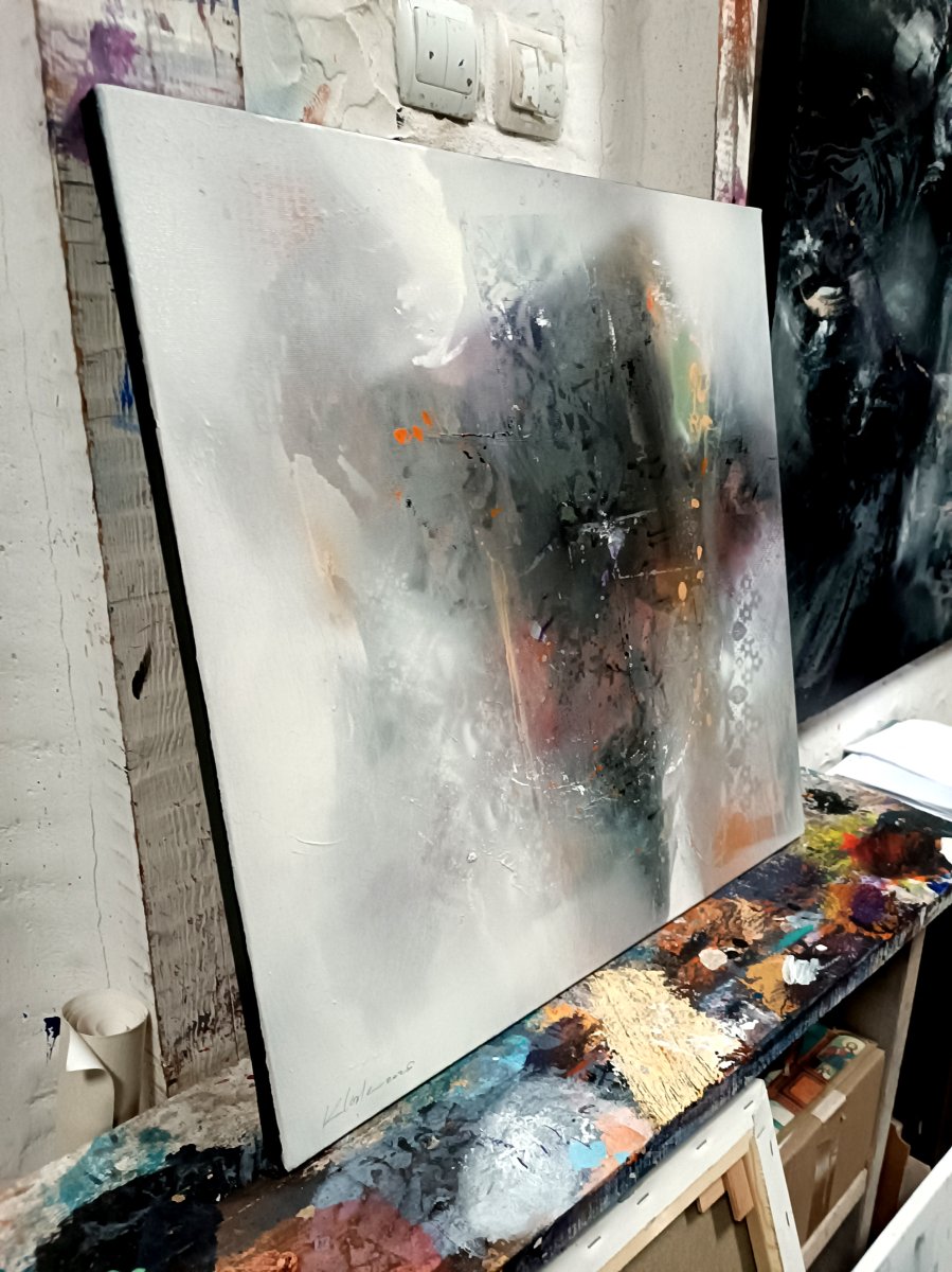In dialogue with current abstract practices, this painting resists spectacle and instead cultivates density through subtraction. It aligns with a lineage of abstraction that privileges vibration over narrative, process over depiction. Yet it departs from purely formal concerns by maintaining a metaphysical undertow. The surface is not only material — it is mnemonic.