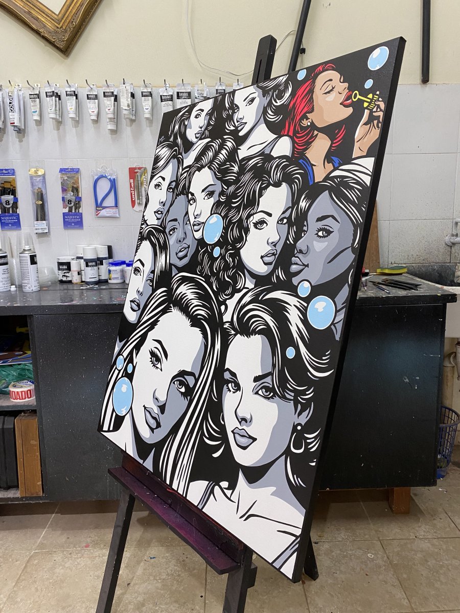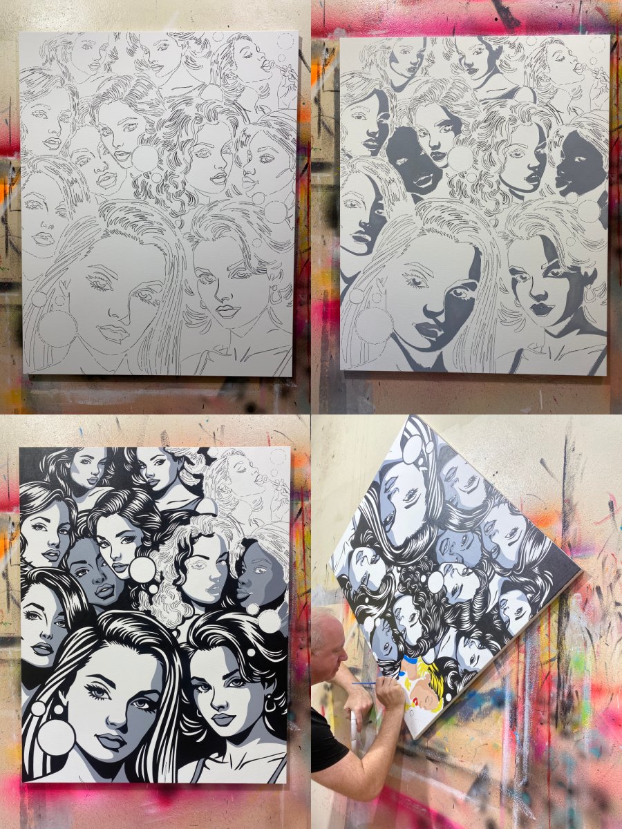 In this artwork I explore looking beyond first impressions of someone, the filtered and airbrushed beauty of modern life, to seek out the individuality of a person. As one beautiful face blends into another our focus is drawn to the quirky character who seeks to spread their bright zest for life to others around them. Celebrating uniqueness amid conformity. This piece will infuse any space with a lively, captivating energy, perfect for sparking conversations and inspiring the celebration of personal identity.