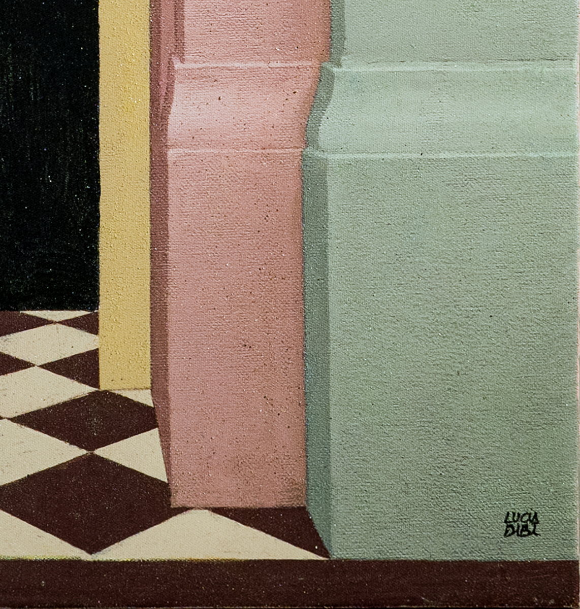 This artwork represents a journey through the concept of thresholds and silent architectural mysteries. My creative process is rooted in the exploration of the everyday: I gather urban fragments through notes, sketches, and digital decompositions that slowly evolve into a painted reality.