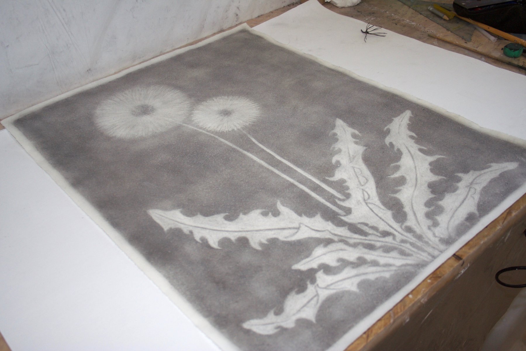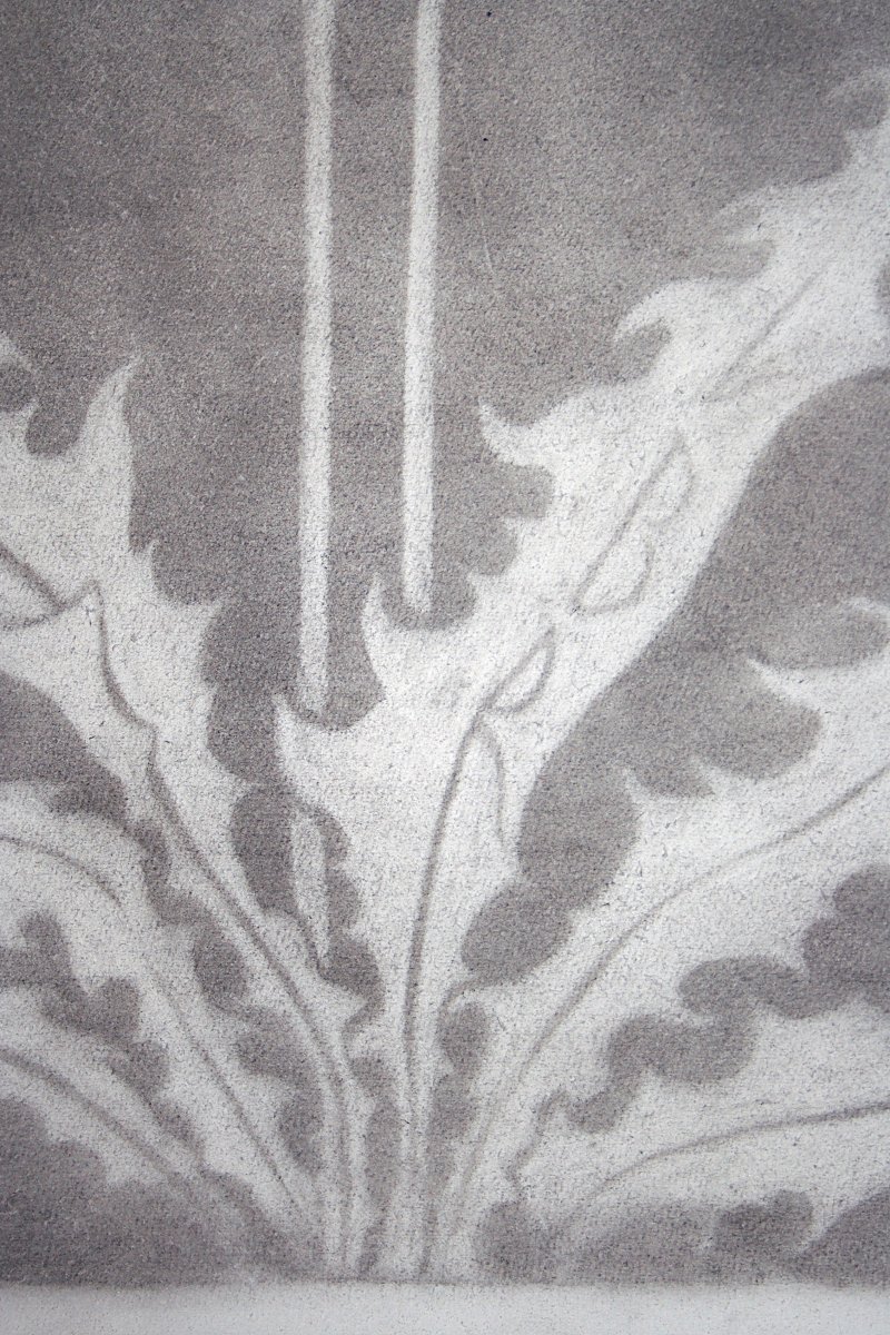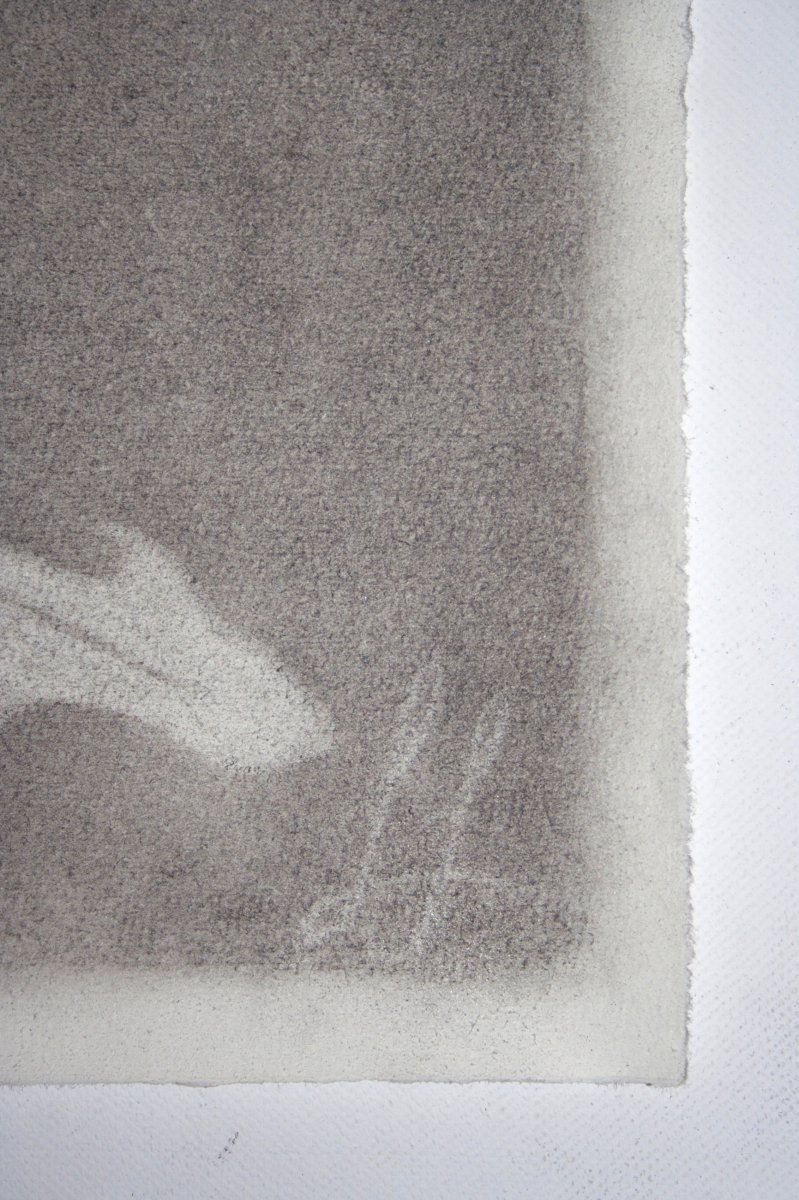 This charcoal drawing captures a dandelion flower (Taraxacum) at a moment between presence and dispersal. Its delicate seed head unfolds like a soft sphere of light, almost weightless, as if it could dissolve into the air at any second. Fine lines and subtle gradations of grey reveal the fragile structure without diminishing its sense of lightness.