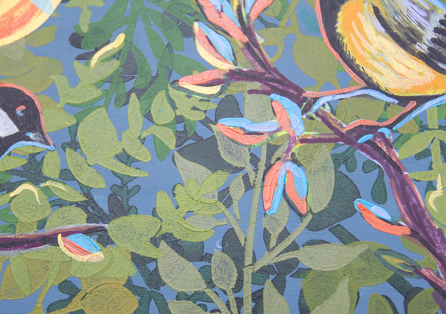 In crafting this piece, I immersed myself in a flamboyant, illustrative style, aiming to bring the effervescence and whimsy of nature right into your space. The stark black bird, perched among the vibrant, twisted branches and blooming flora, symbolizes resilience and beauty in the chaos of life. With each brushstroke of bold acrylic colors, I infused joy and a touch of naivety, hoping to ignite a sense of wonder and vitality in your home.