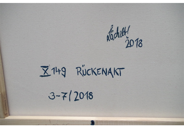 "X 159 - Nude" by Uli Lächelt is a striking painting that explores the human form through a compelling interplay of color and texture. The artist employs a dark, almost atmospheric background that contrasts sharply with the vibrant, multicolored outlines defining the reclining figure. This juxtaposition creates a dynamic tension, emphasizing both the fragility and strength inherent in the nude subject. The use of expressive lines and layered hues imbues the composition with a sense of movement and emotional depth, inviting contemplation of identity and presence. The painting’s abstract yet intimate approach challenges traditional representations, offering a modern interpretation that resonates with both vulnerability and resilience.