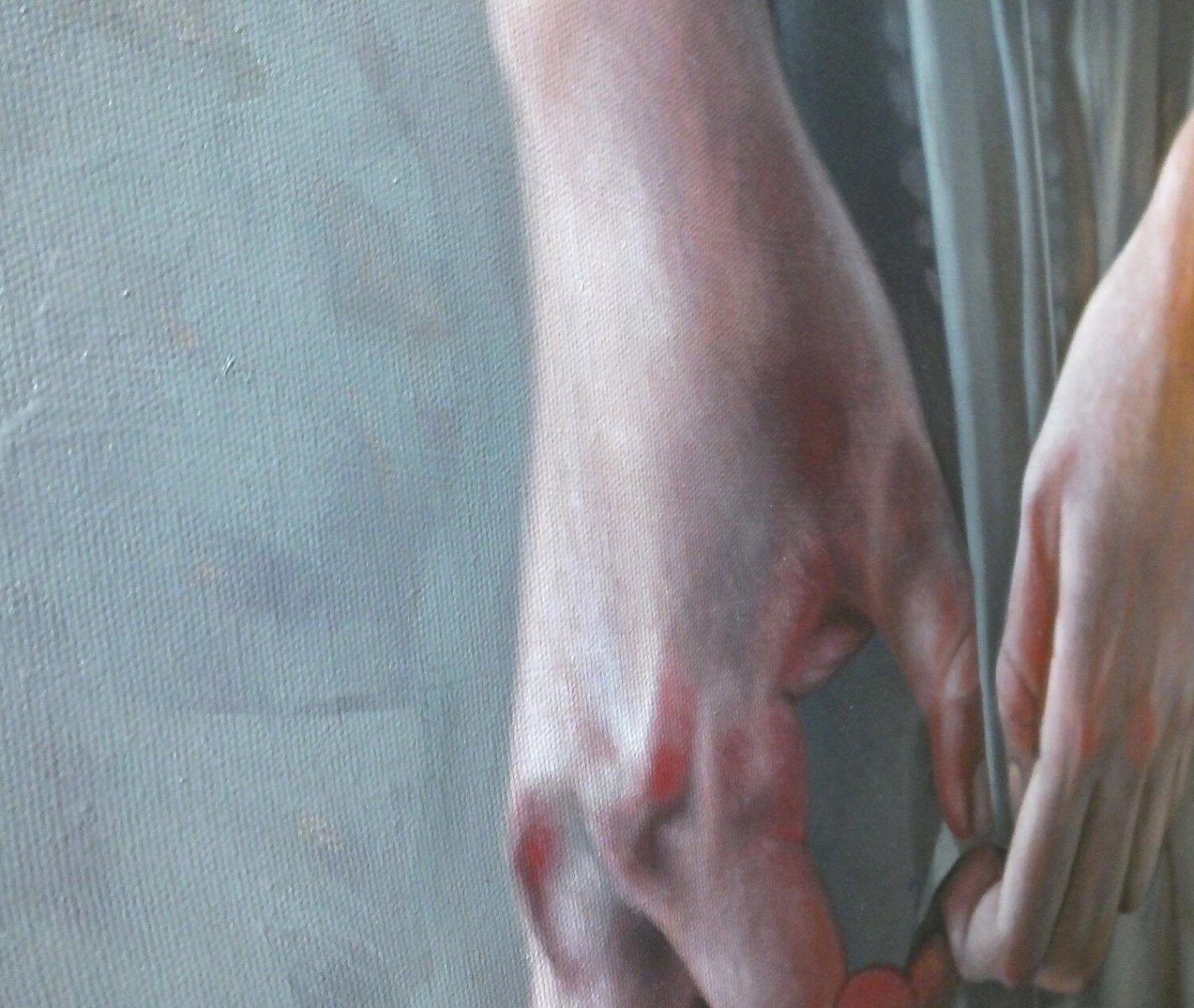 The painting “Hands” depicts two resting hands – gently placed together in a quiet, tender moment.