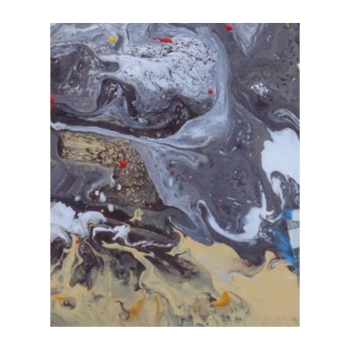 Abstract art on a cotton canvas frame using brushstrokes and Dutch pouring techniques.