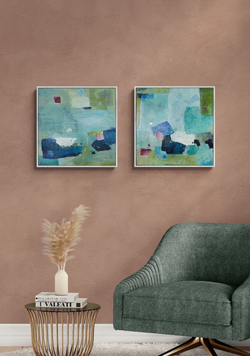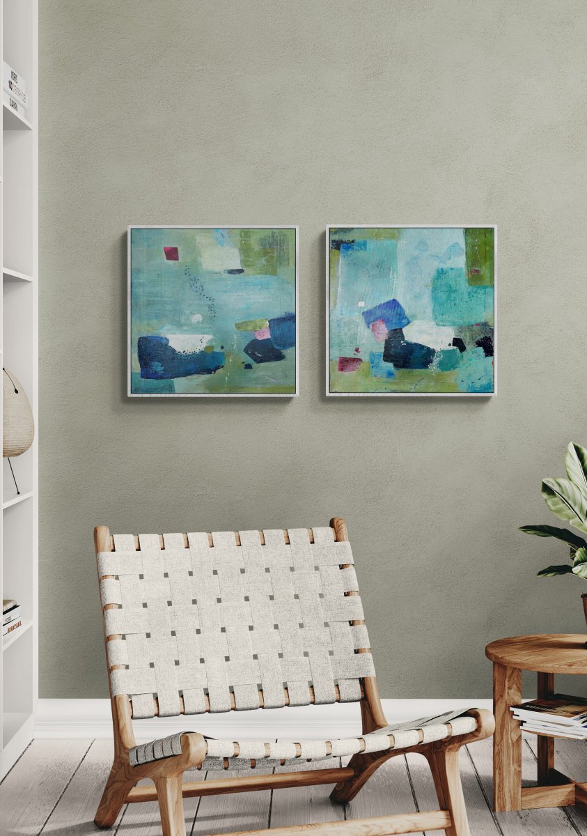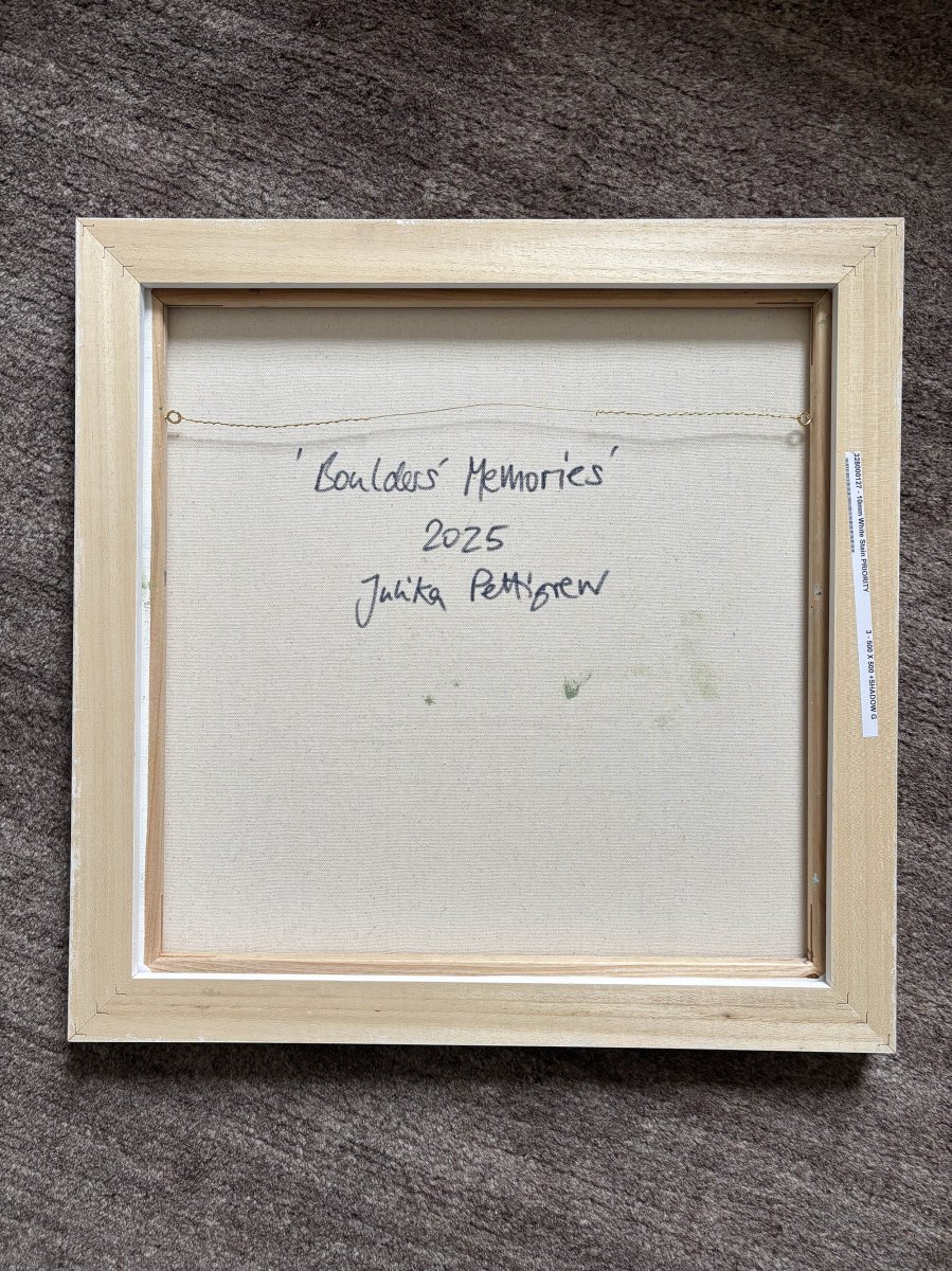 Original abstract painting inspired by Boulders Beach in South Africa, featuring dynamically composed shapes and a vibrant, yet harmonious colour scheme. The Boulders' Memories add refined sense of natural texture and depth, enhancing your space with elegant artistic expression.