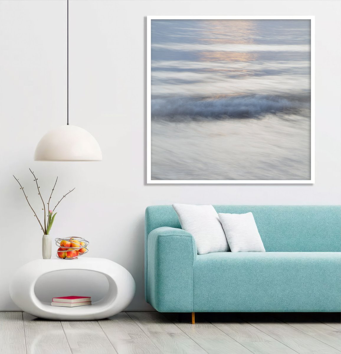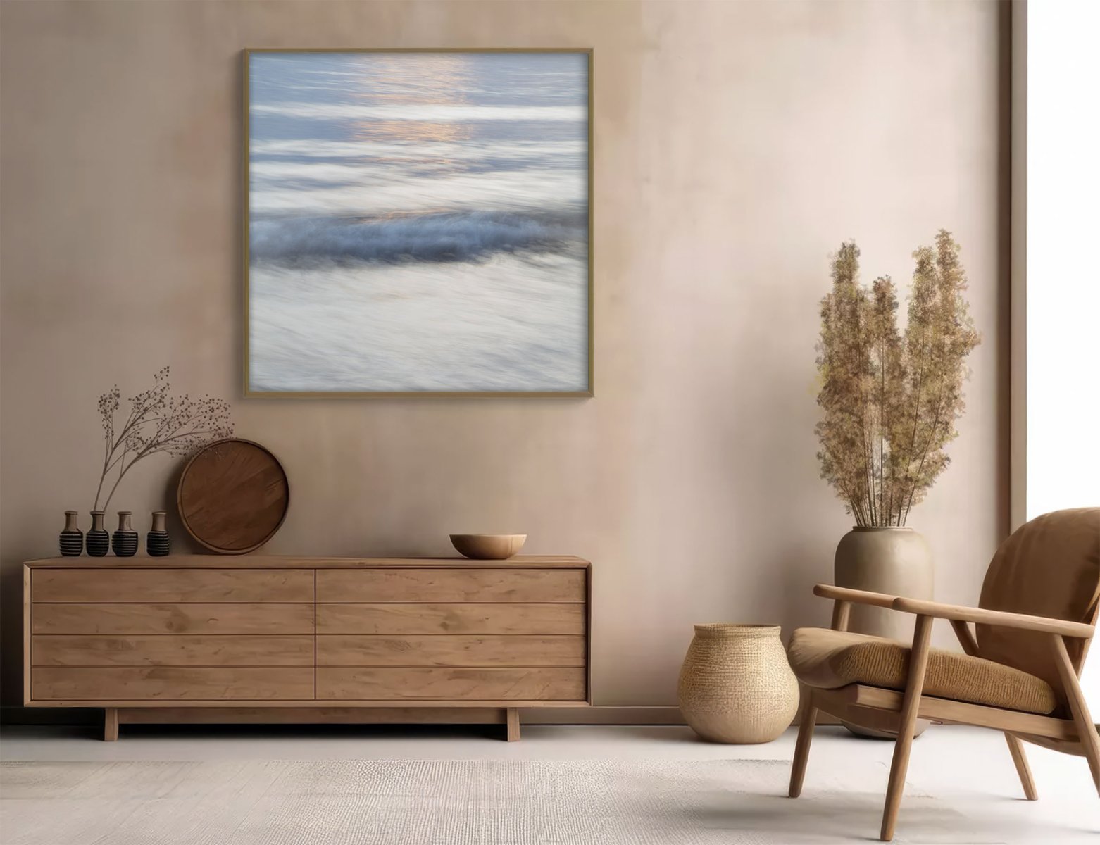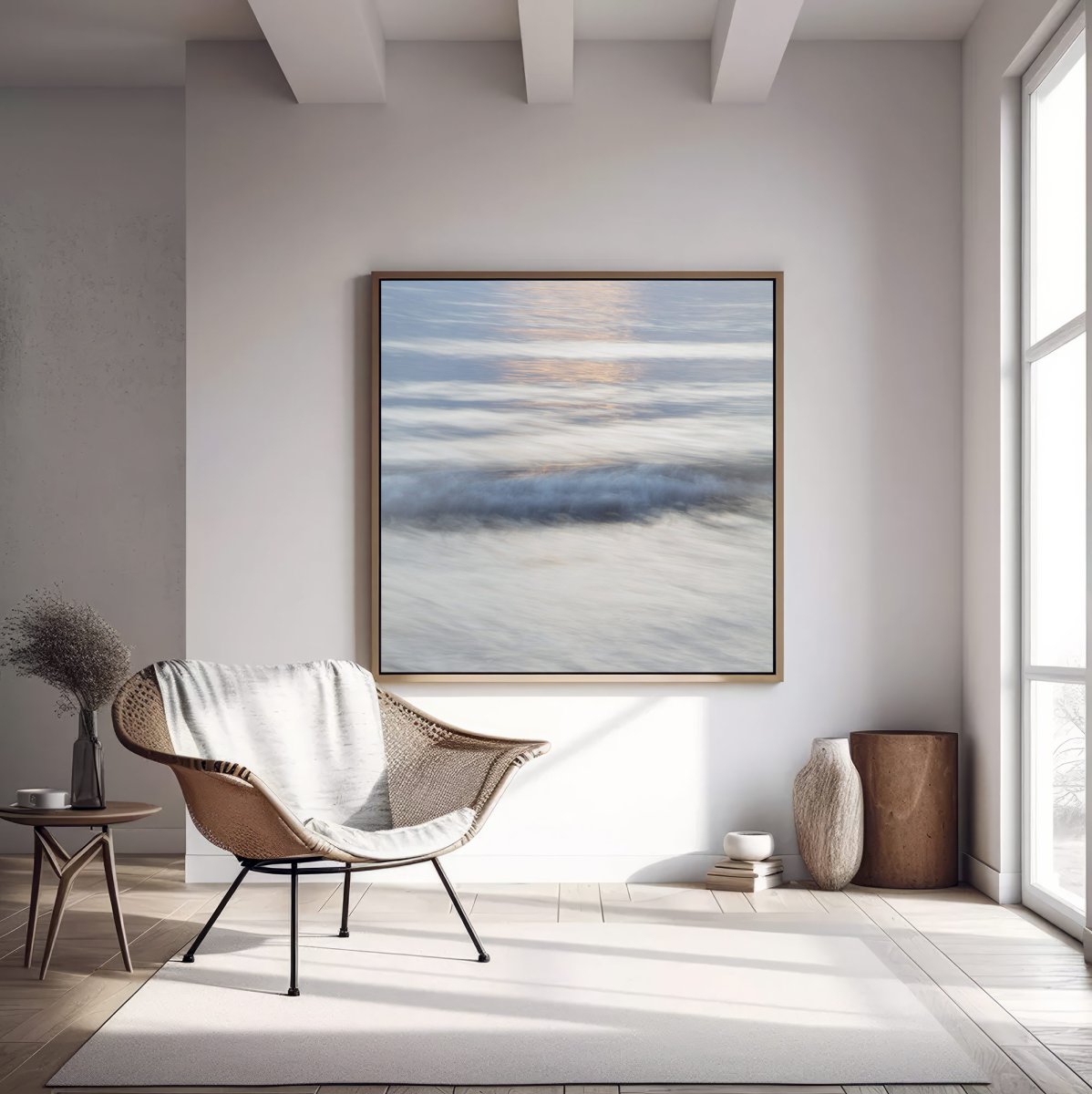 A cool palette of silvery blues is brushed with faint warm reflections, suggesting the last light of day dissolving across the surface. In this photograph, movement is slowed to a whisper, and the landscape becomes an inner state: a quiet urge to fade, to let the self loosen and disperse into a calm, endless expanse.