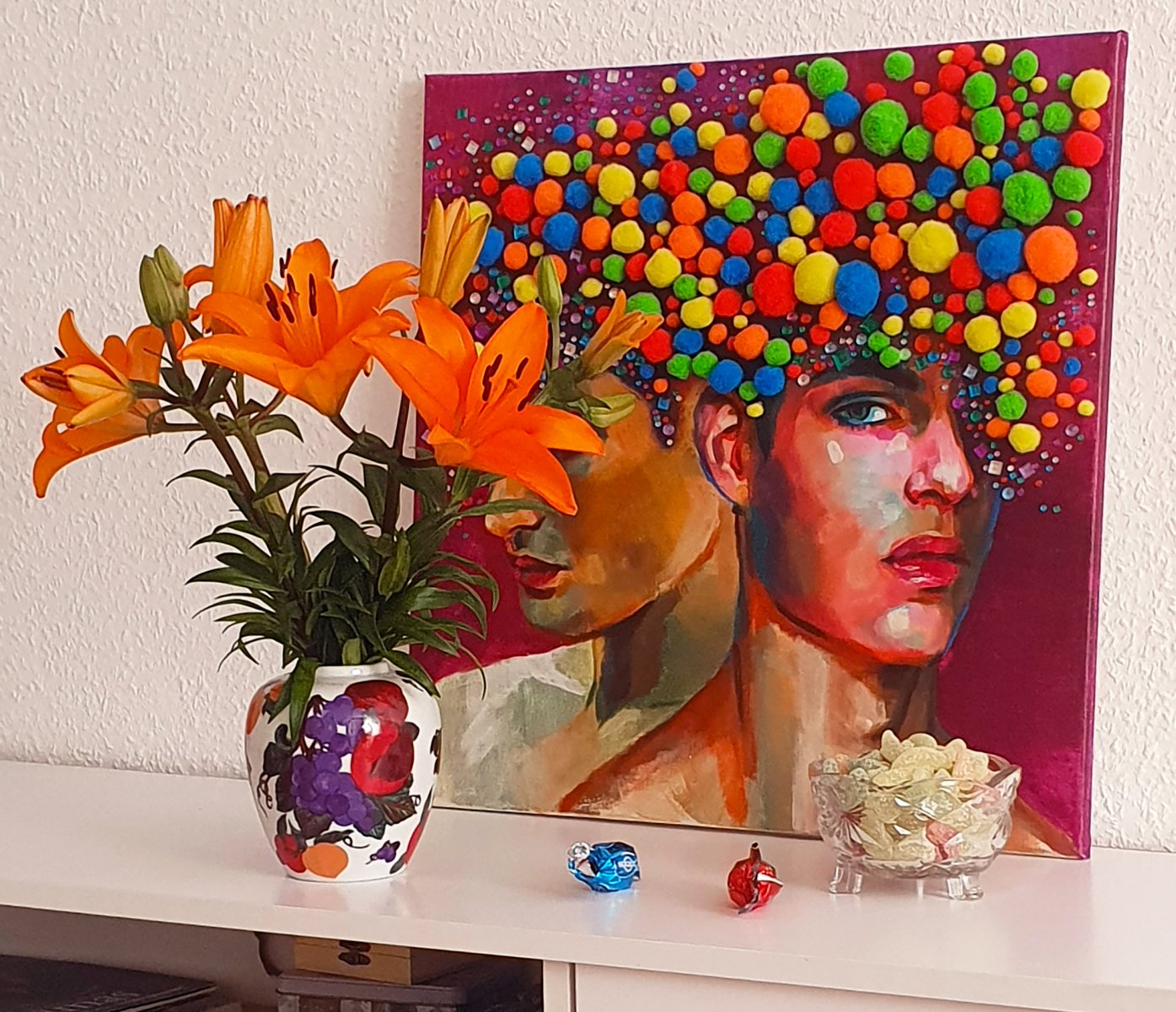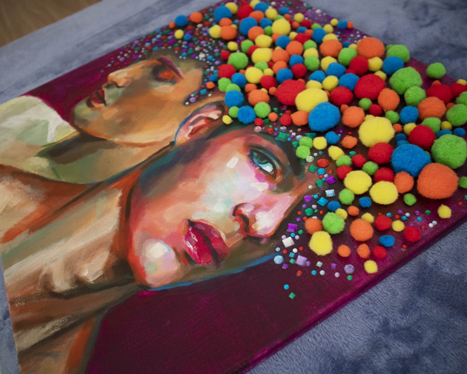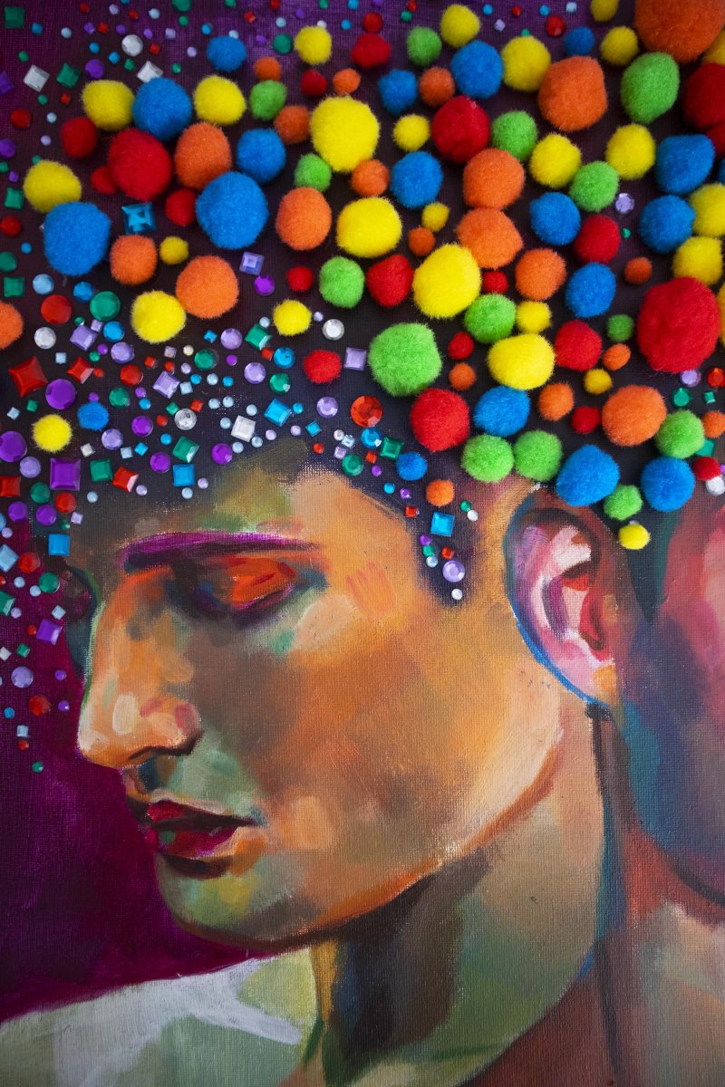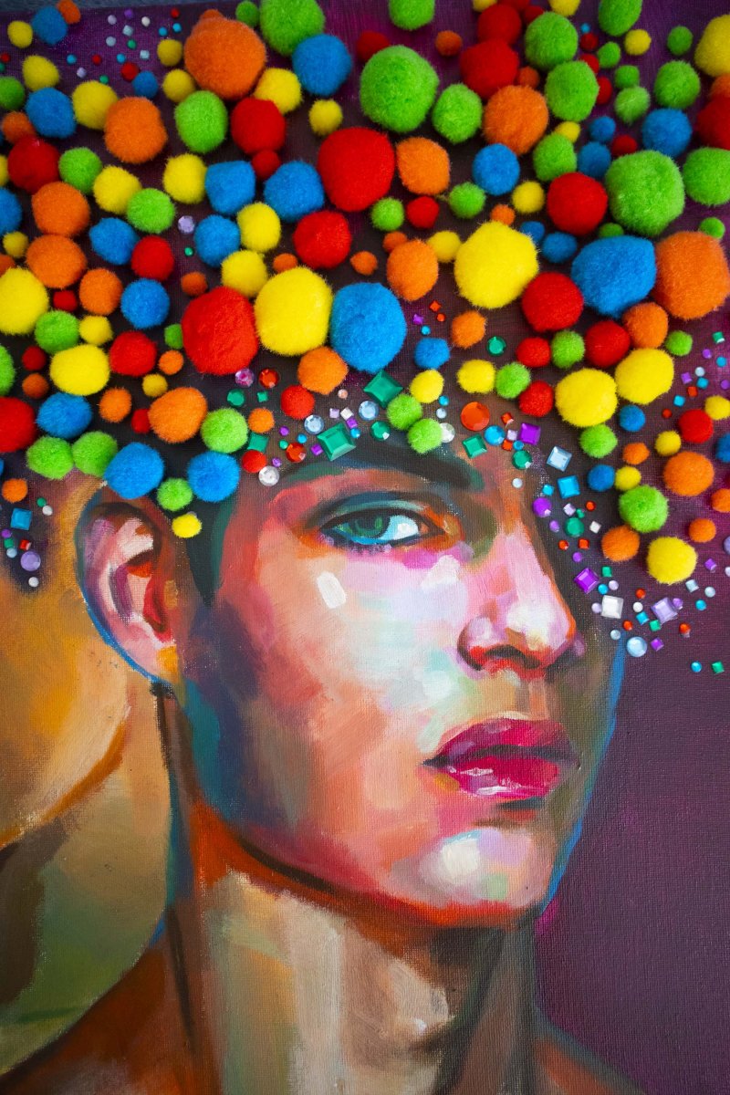 original acrylic painting with inique collagen elements