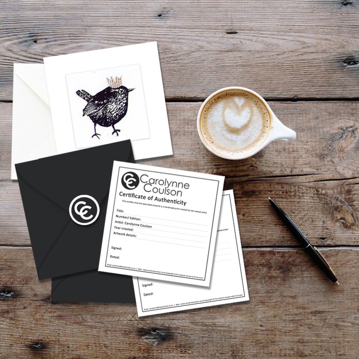 My linocuts are handmade from start to finish, hand carved, rolled and handprinted, as in the nature of linoprints and the handmade process they may have small variations. This I feel is part of the charm of printmaking and makes each print into both a unique artwork and part of a limited edition run.