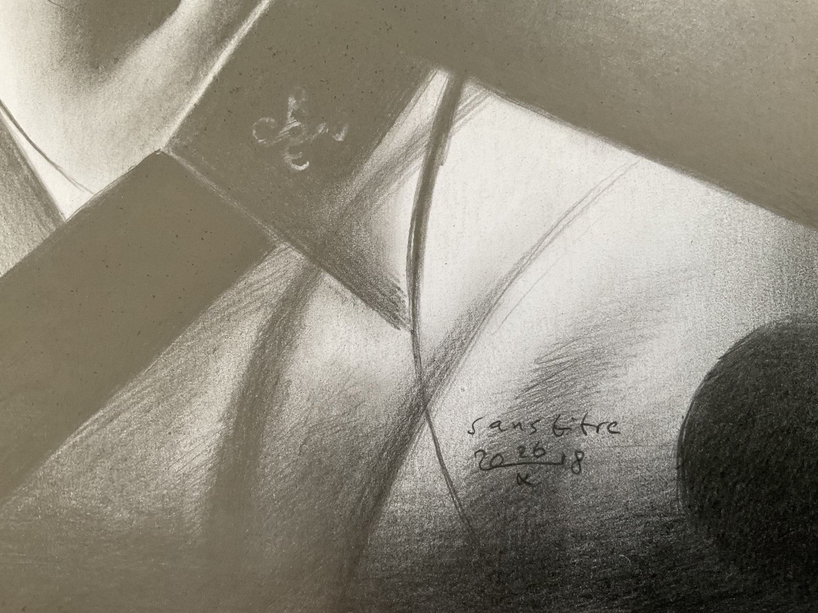 This graphite pencil drawing ‘Sans Titre - 26-10-18’ is my interpretation of the smashing facial features of Angie Dickinson. One time I was looking at the reference picture of her at Studio Brugman. My colleague Gilbert said her face looked almost chiseled like a statue and I think he’s right. Often I search for old pictures like that. Generally I find them so much better than many contemporary ones. That’s due to the dramatic tonal bandwith that let the portrayed stand out in a sound pose. Almost like a chiseled statue so to speak. Therefor, in general I chose to be inspired by these 1930s art deco-like styled photographs. Contemporary pictures just won’t do for me. Next to this, from a tonal point of view these photos match my monochrome moods in graphite much better.