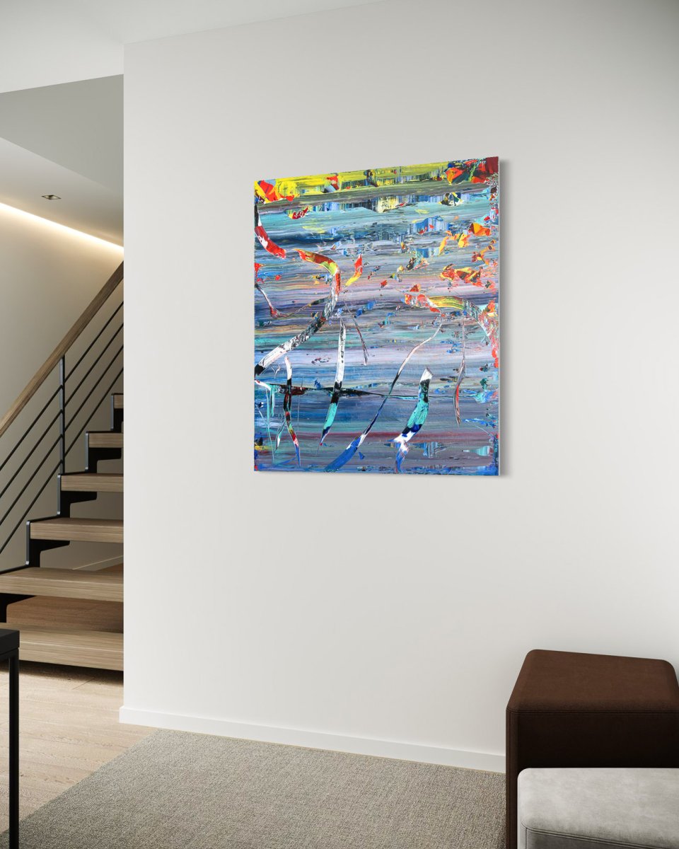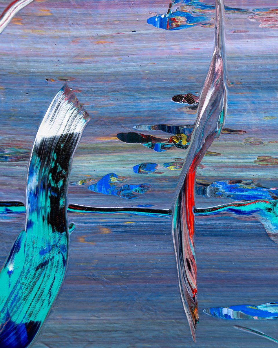 An image like a glance that lingers. Swathes of color cut through layers, as if they had touched something that was just there a moment ago – a moment that did not want to stay. The present is fleeting, but it leaves traces behind.