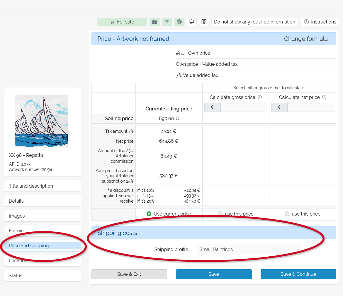 However, you can always assign a shipping profile to an individual artwork, regardless of its status, in its settings via the Artwork Directory: